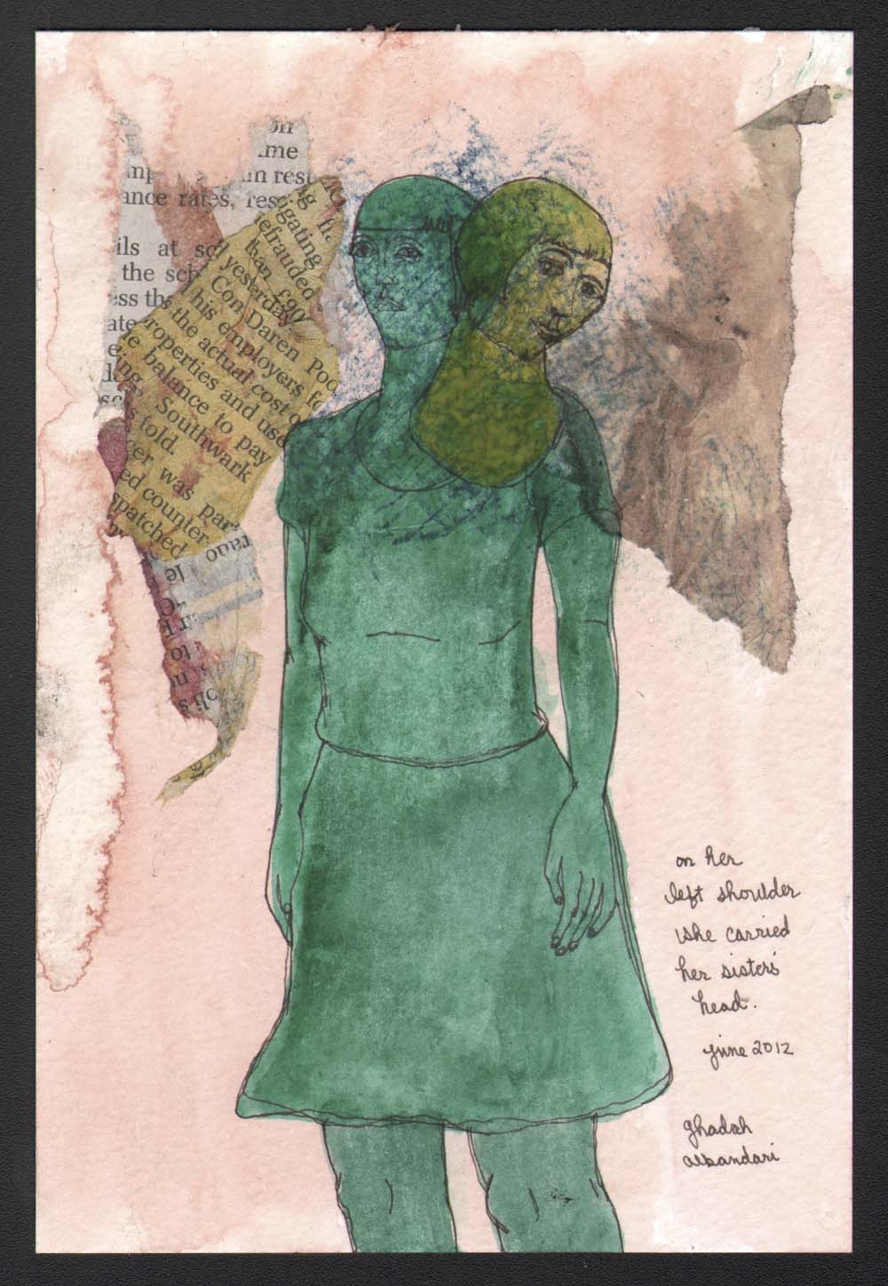 Category: Cut & Paste, Postcards, PrettyGreenBullet } TheThirdExhibition, Watercolor Tags: art, collage, cut and paste, green, ink, Kuwait, postcard, Postcards, sketch, watercolor, woman