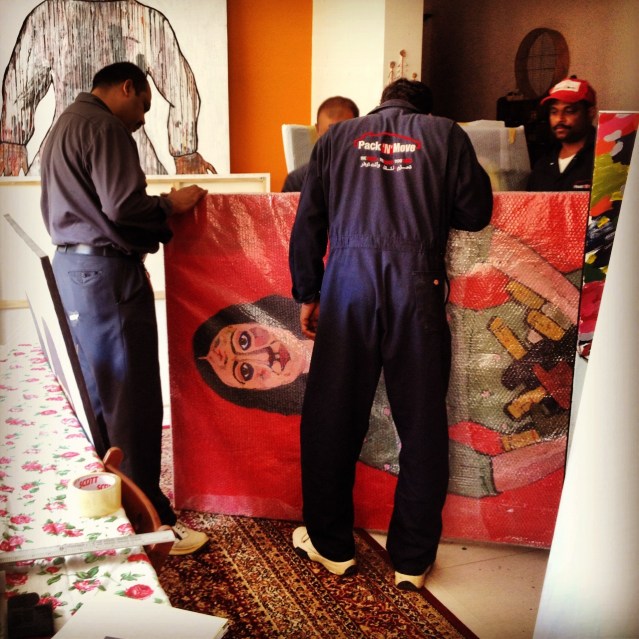 My paintings were finally transported to dar.nur this morning. I have to say I was bubbling with energy, really happy they were going to a better place! Be good, girls. I’ll be visiting every now and then x