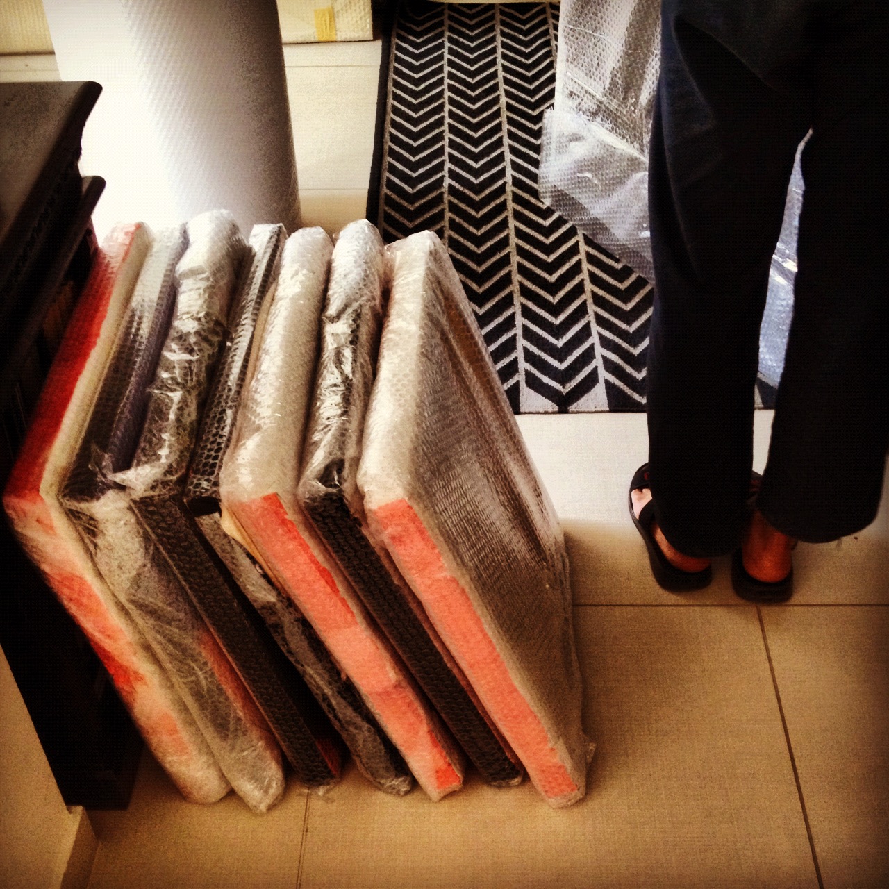 the storm before the calm. my place resembled a wrapping factory. the men were very efficient and took great care handling the ladies
