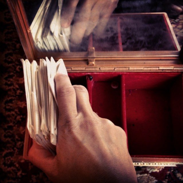 a perfect fit and a perfect click of a treasure chest unlocked. the last time this box was open was in my room in doqqi, cairo back in 1988. the only contents i remember it holding were the notes my best friend cathy used to write to me in high school