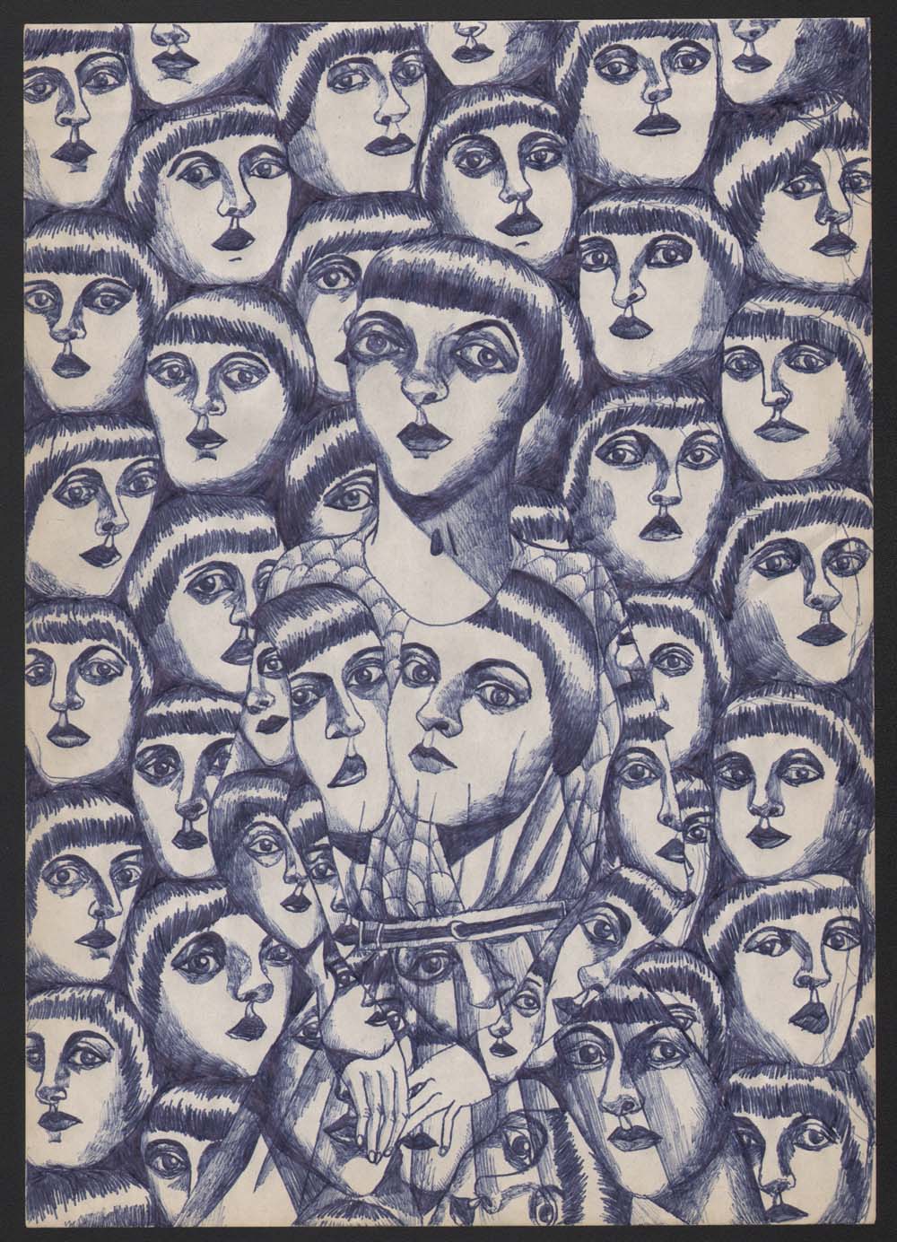 Category: Drawing, Newsprint Pad Tags: art, bic, camouflage, design, drawing, face, figure, girl, ink, Kuwait, newsprint, pattern, pen, woman, women