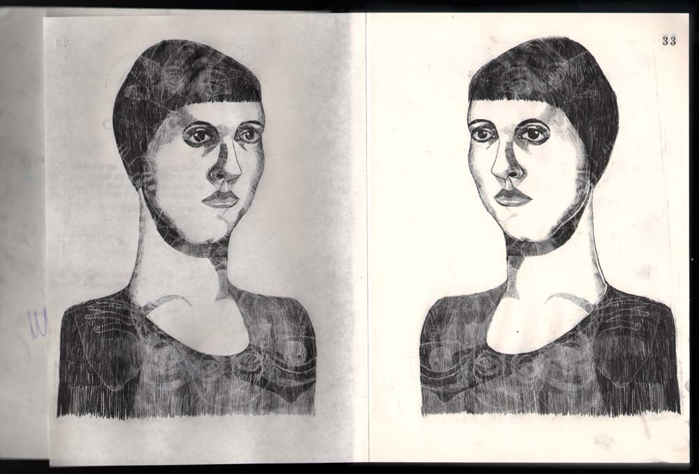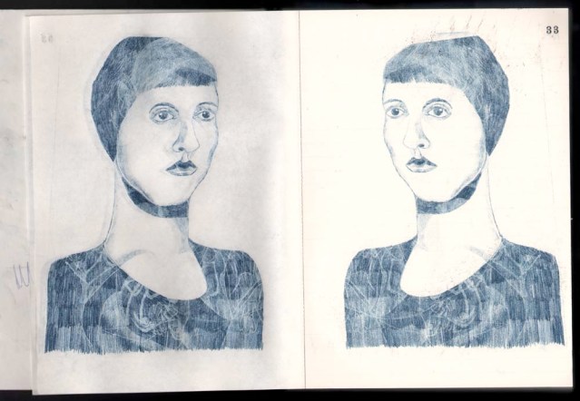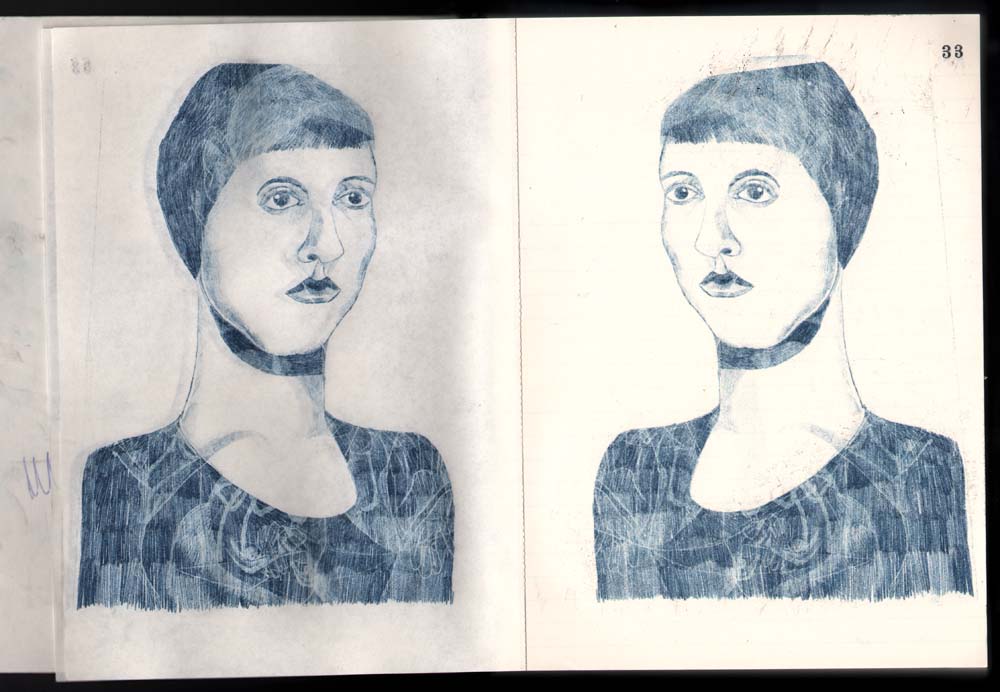 Category: In Triplicate } The Creation of Unoriginal Artwork Tags: art, black, blue, carbon, copy, drawing, duplicate, ink, Kuwait, lines, portrait, sketch, think, triplicate, woman