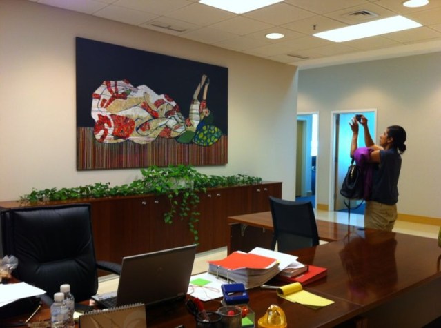 I want to thank Ghada Khalaf for two things: yesterday, she brought to my attention (via my ever-supportive sister-in-law J) this article* in the Arabic issue of Le Monde Diplomatique. Today, also via J, I received the above photo of Ghada photographing my painting at the Dasman Diabetes Institute. I love these little gestures. And although to whoever made them they may be a trifle, to me they mean the world.