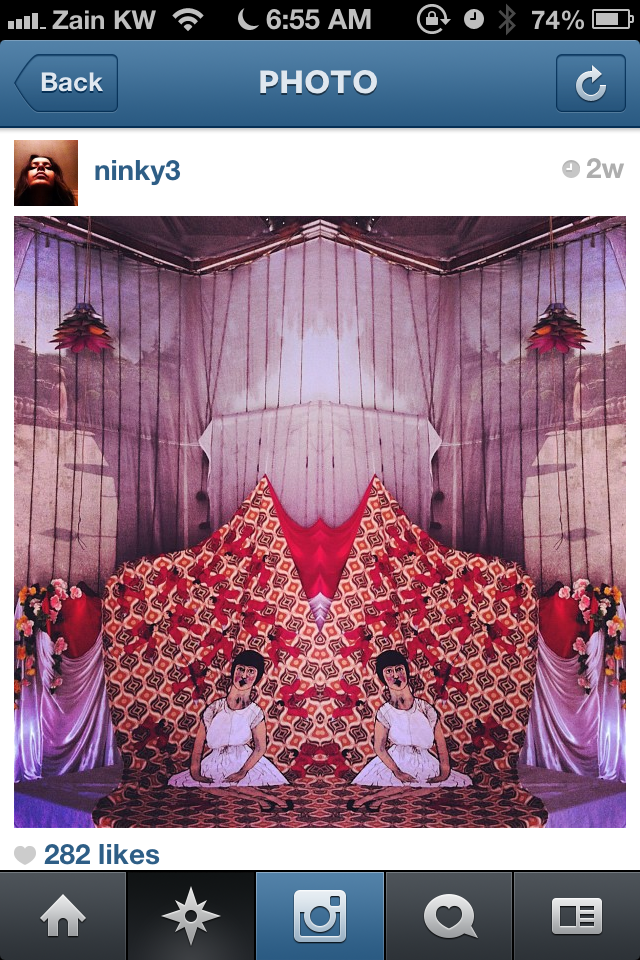 although i wanted ninky to be the first to instagram this tapestry, i had to take my own photo for sentimental purposes. i took this one at my parents’ home in mishref. i’m thankful to my mom and sister who helped me with this shot, especially my sister who actually had to climb onto the neighbors’ rooftop