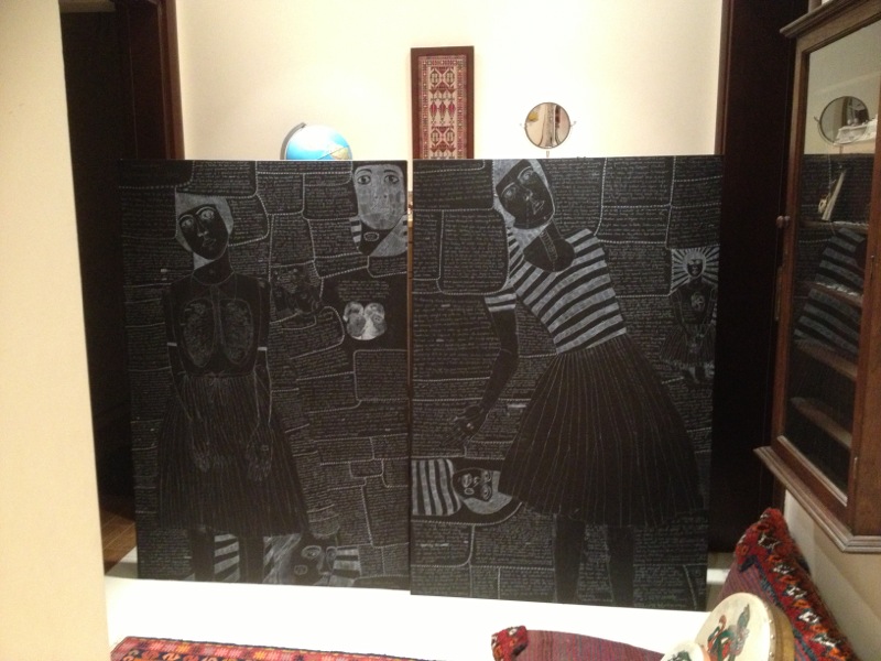Your sad lady is beautiful. Isn’t it funny how the paintings you struggle with can turn out to be the ones you are most pleased with? I’m also delighted by the “dialogue” between the figures in your large journals.