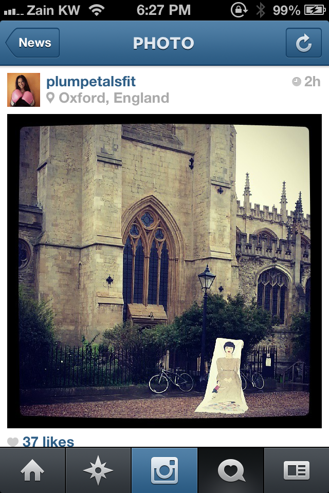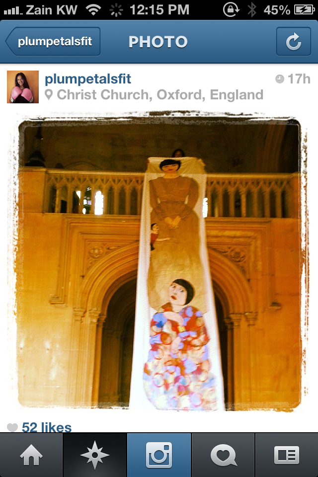 Ayesha’s comment on her Christ Church photo: ‘Hanging about right outside Harry Potter’s dining hall! (Had to quickly run away as the security guards were coming!!).’ She then added, ‘Wish I had a pic of what followed-me totally entangled in the tapestry in a rush to hide from the guard!’