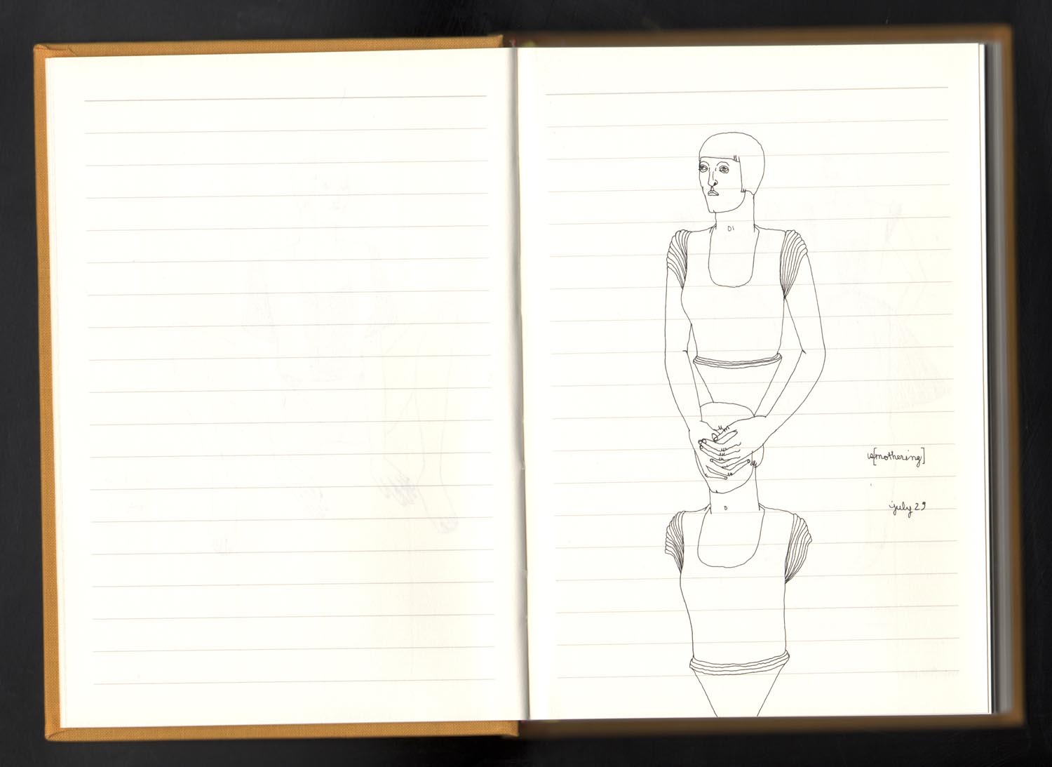 Category: Sketchbook, yellow sketchbook Tags: art, drawing, ink, isograph, pen, rotring, sketch, woman, women