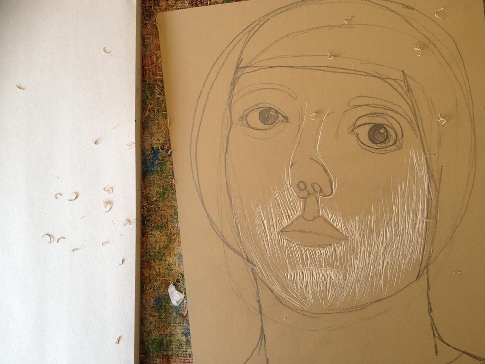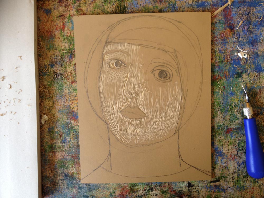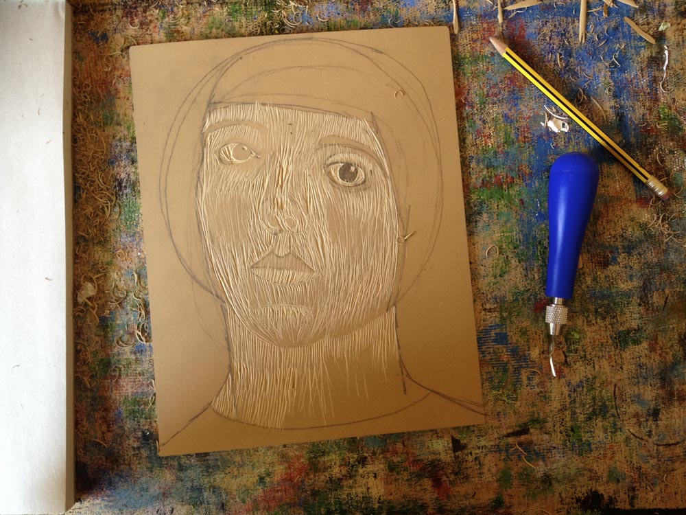 block print #2 } lino face