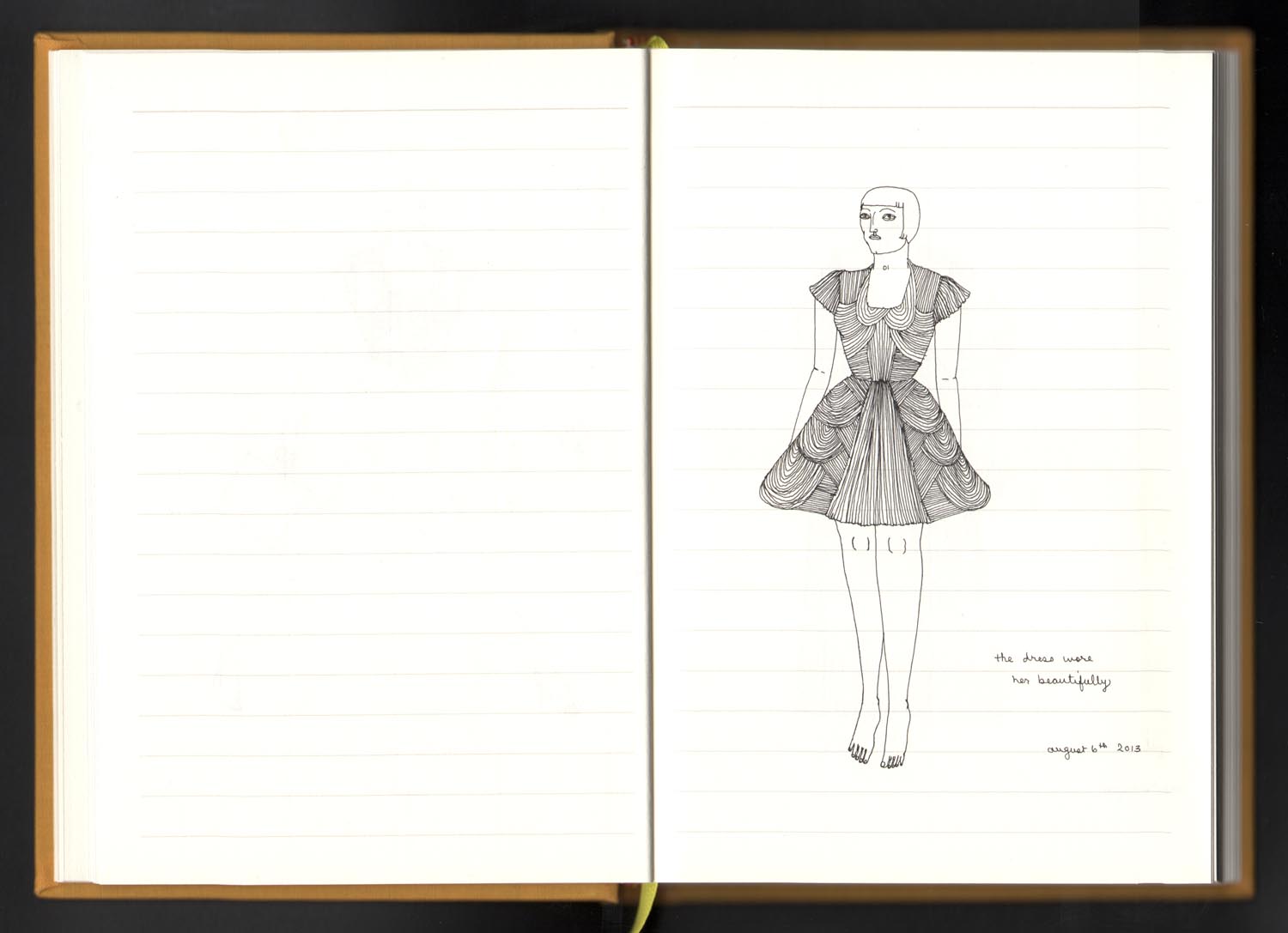 “The dress wore her beautifully” reminds me of a line from Leonard Cohen’s “One of Us Cannot Be Wrong”: “I have to confess that I tortured the dress that you wore for the world to look through”.