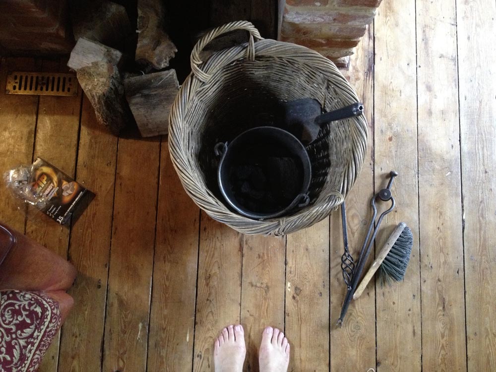 this may appear to you like a ‘real’ fire, but it’s just the firestarters burning. soon after i patted myself on the back for my success, smoke started puffing back into the room. i didn’t want to die of carbon monoxide poisoning so decided to put out the fire-which was impossible to do within the time-frame i needed it to be extinguished. i opened all the windows and waited outside for something to happen. i think i was just waiting for mark to return from a day trip to ipswich with his wife and kids. when he finally arrived, he built me a proper fire