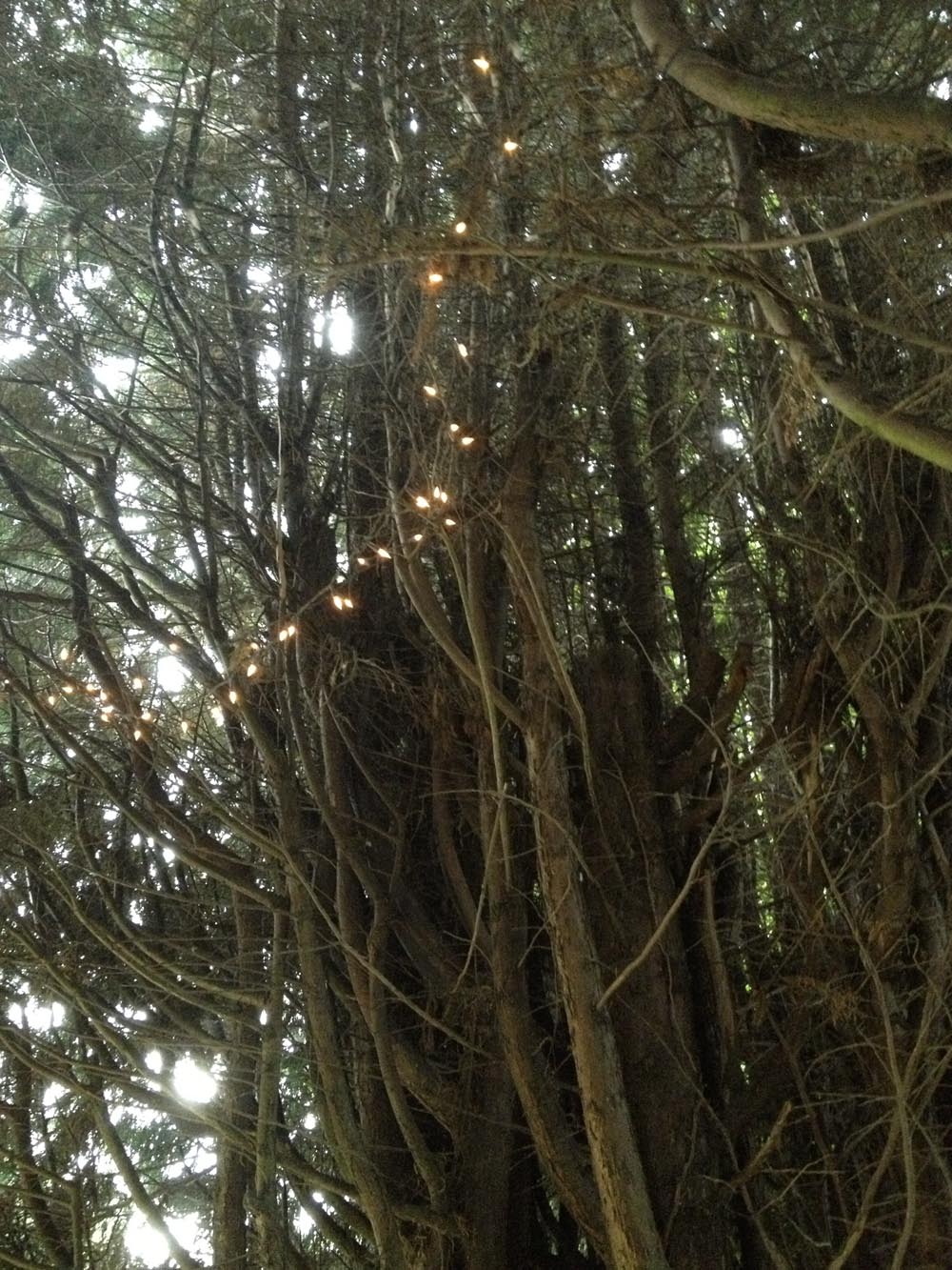 meanwhile, outside (this was when i was waiting for any lethal gases-JUSTincase-to dissipate, i checked out the twinkle lights in the trees and along the walls