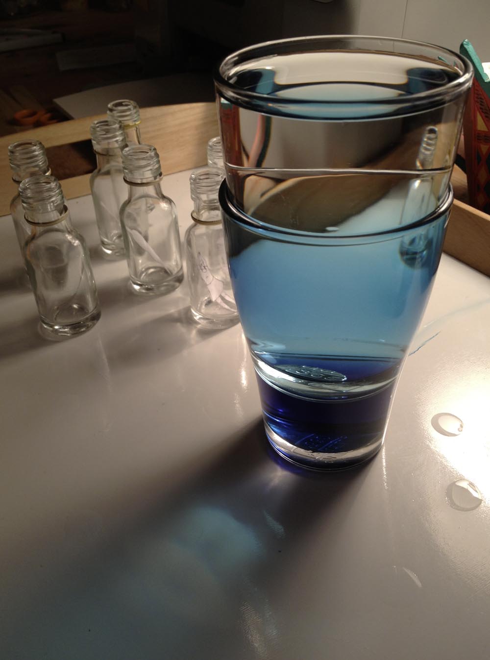 These are two videos my son Khaled and I filmed while playing with some water and blue food coloring. We were both very mesmerized by the way the dye reacted with the water. Later we introduced my girls to the liquid in what turned into something resembling water torture. Our intentions were good, but I’m not so sure the girls were happy.