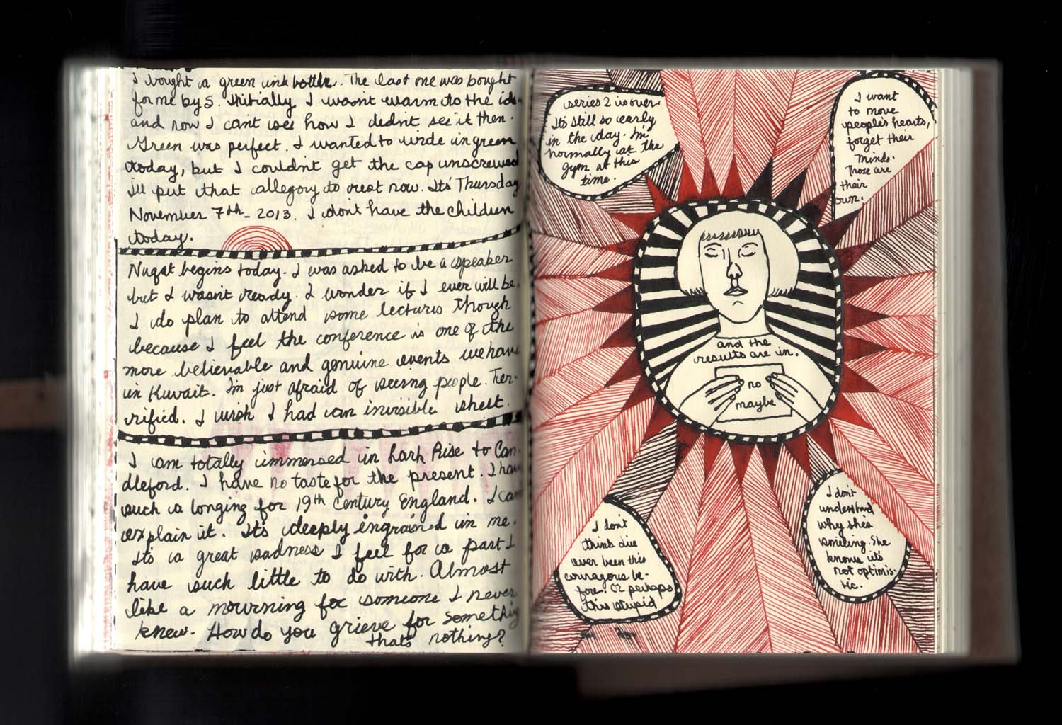 Category: The Brand New & Improved Testament Tags: art, diary, drawing, ink, journal, Kuwait, penmanship, red, sketch, writing