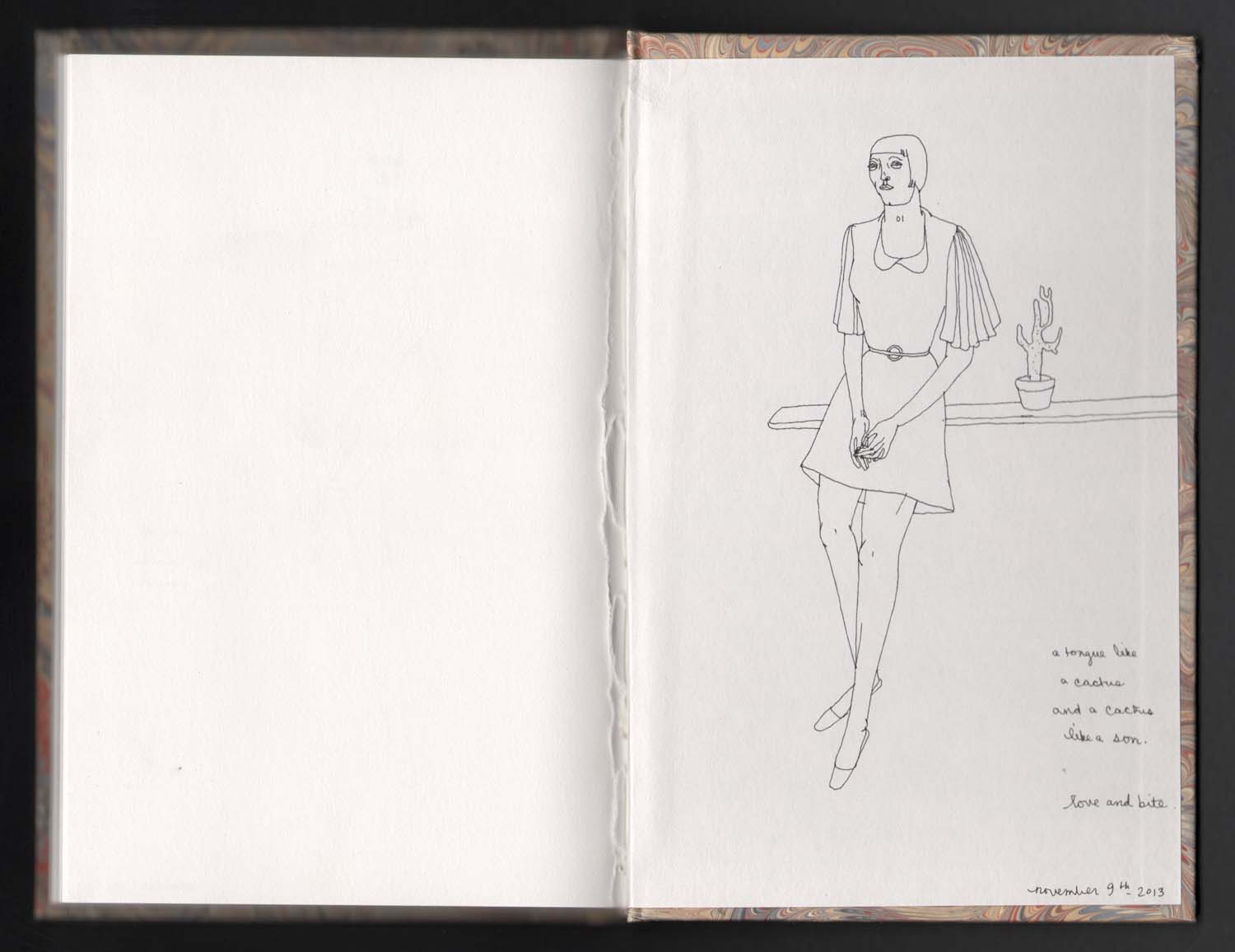 i discovered just here that the friend who left these sketchbooks on my kitchen balcony ledge ripped a few pages out. and that i filled it back to front