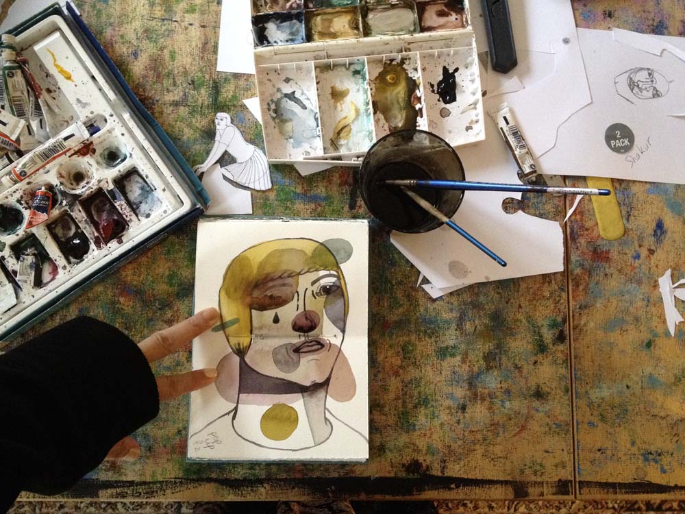 Category: Watercolor, watercolor sketchbook Tags: art, drawing, face, fear, Kuwait, painting, portrait, sadness, watercolor, winsor and newton, woman