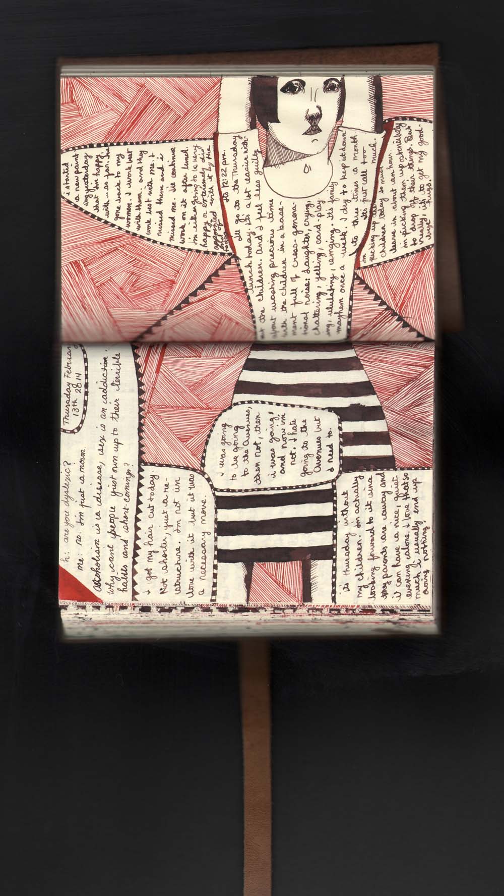 Category: The Brand New & Improved Testament Tags: art, brown, diary, drawing, figure, hope house press, journal, leather, line, notebook, penmanship, red, script, writing