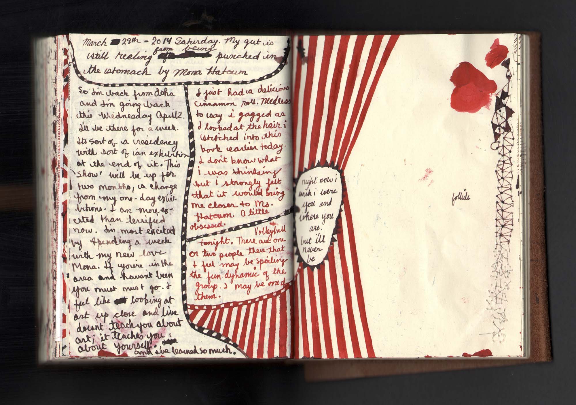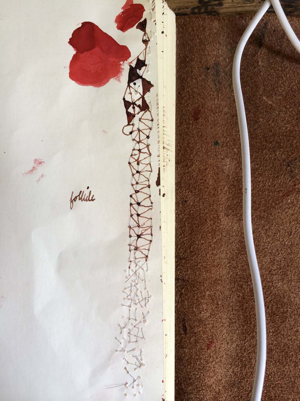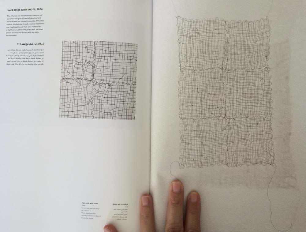 in an attempt to not get too close to hatoum’s installation ‘impenetrable’ i nearly brushed my face against this one, here in her catalog: ‘hair grids with knots’. I was so close to it that it actually came off the wall. so intricate and delicate. i wouldn’t mind finding this sort of hair in my salad at a restaurant