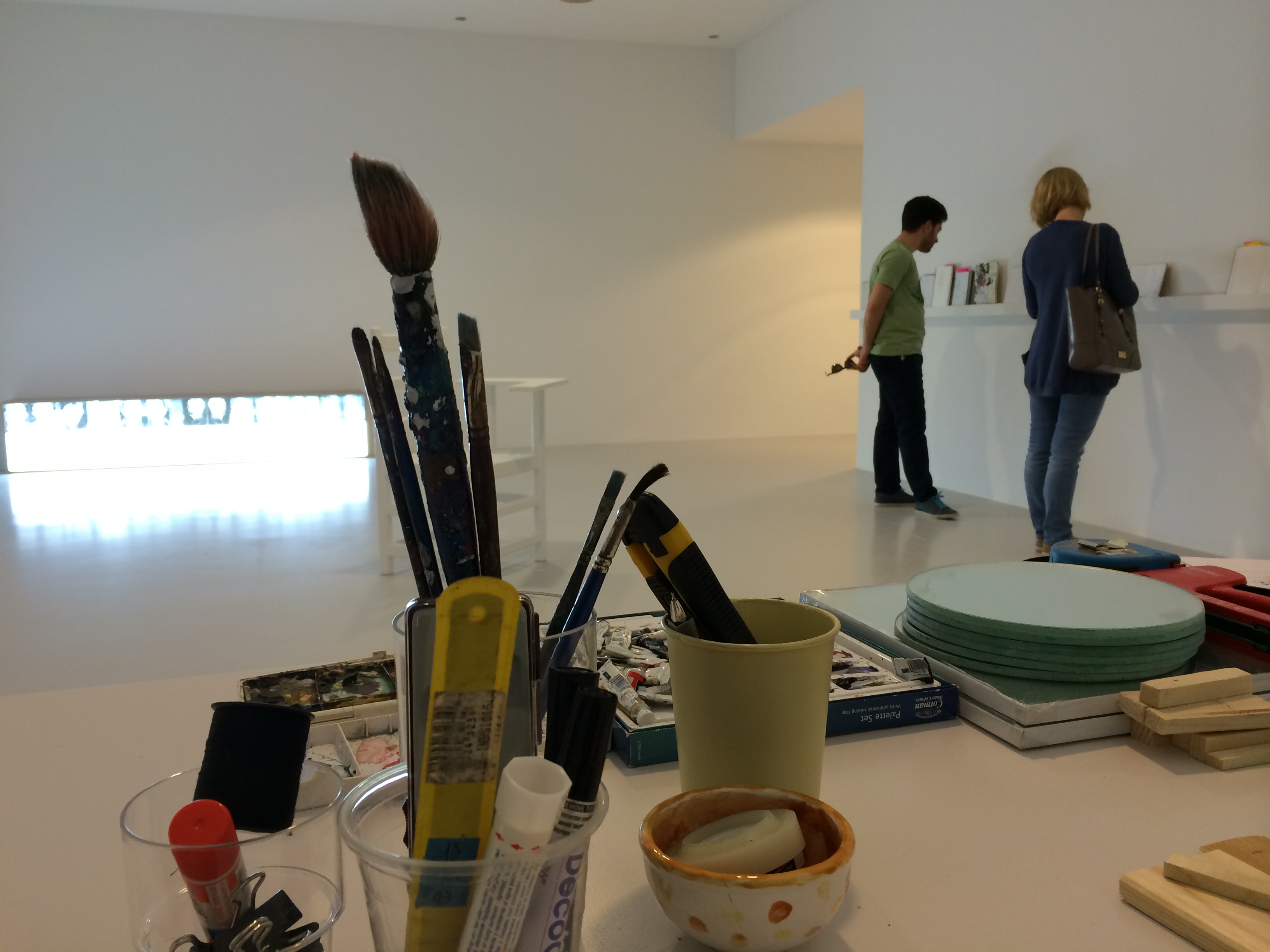 ala’s pyramid stacks of drawings, the light box and a seemingly normal chair