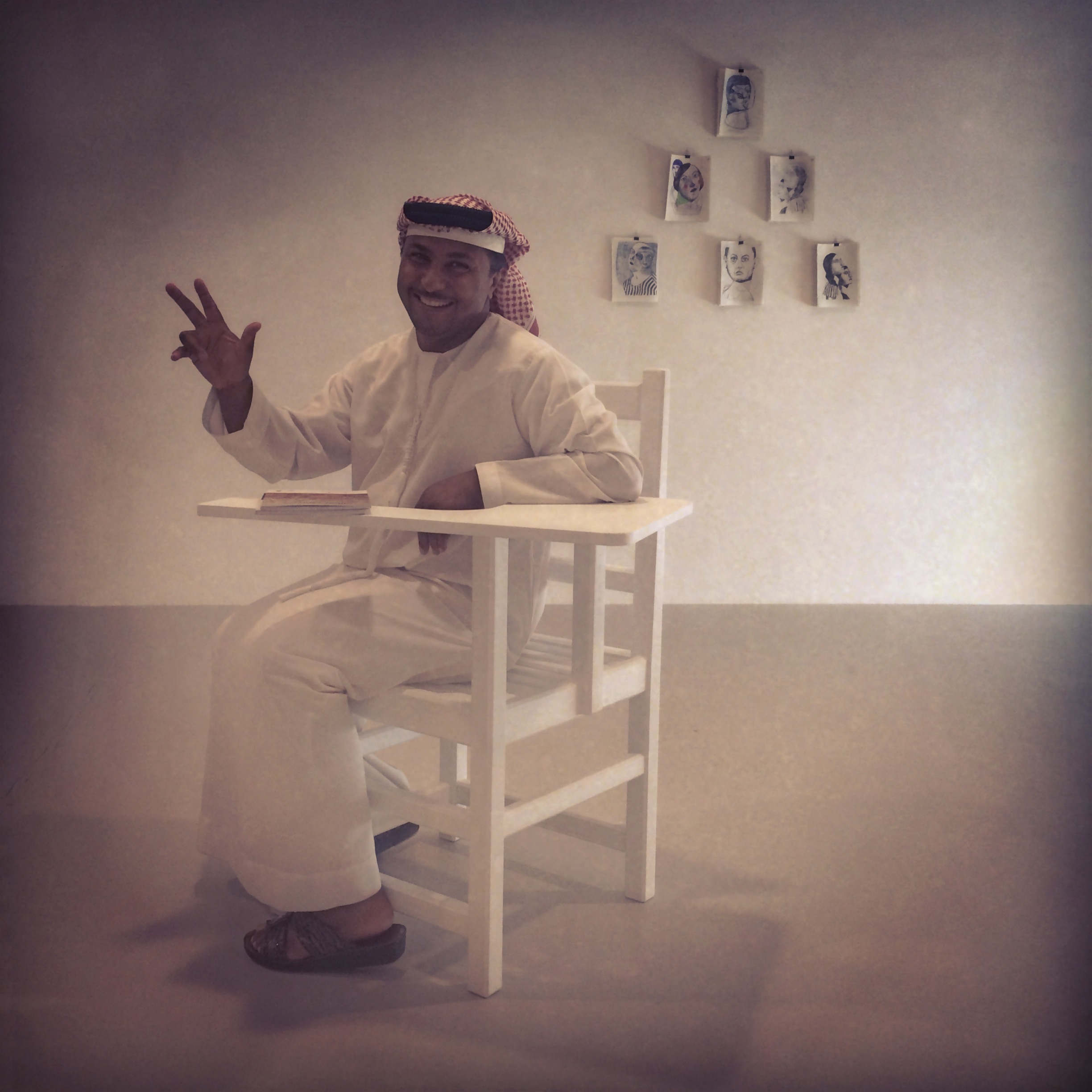 man in a chair. how delightful this man was. the qataris enjoyed my chair most