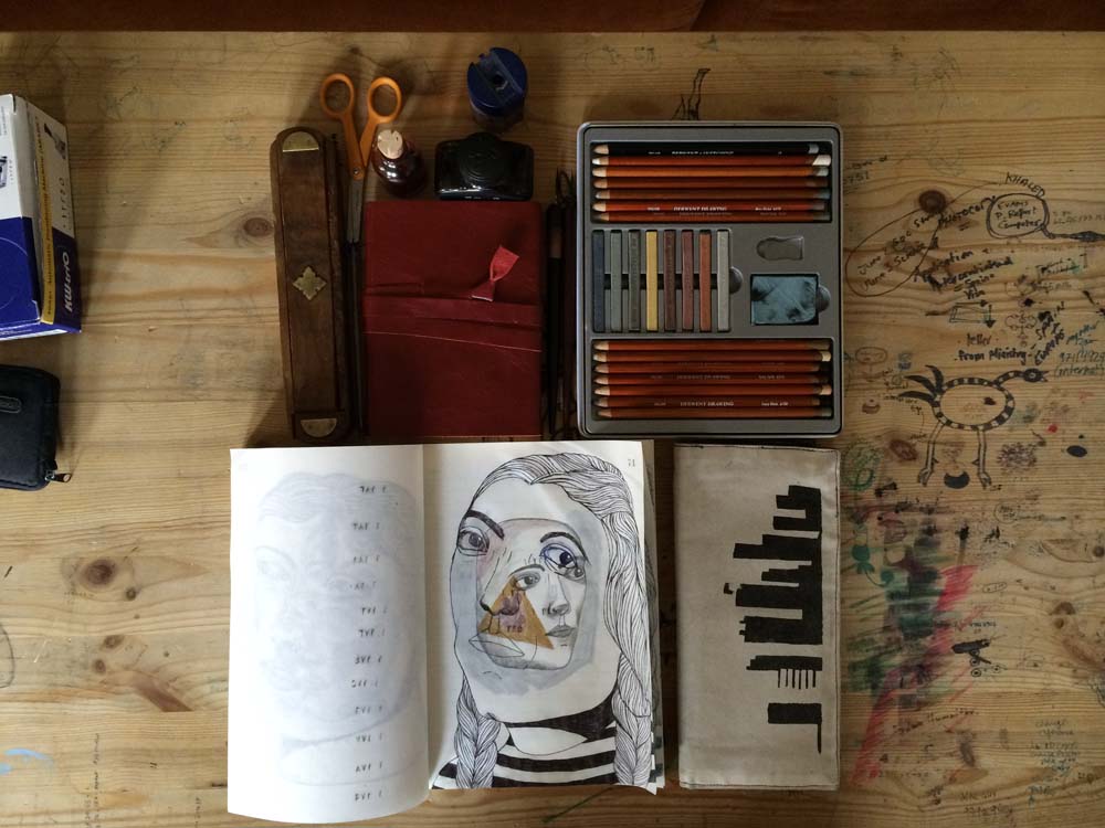 Tags: art, diary, drawing, hope house press, ink, journal, Kuwait, leather, penmanship, red, scarlett, script, sketch