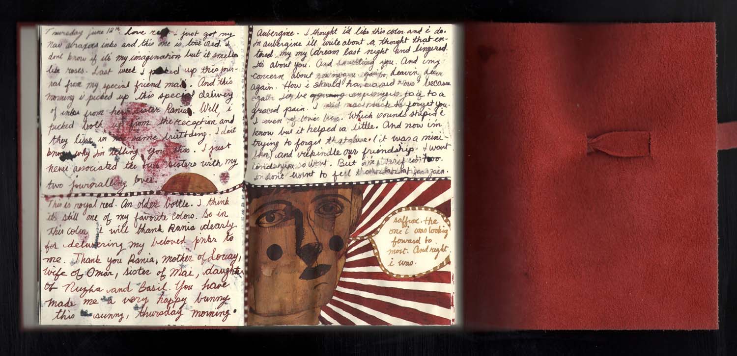 Category: Months of Mai Tags: abraxas, art, diary, drawing, green and stone, hope house press, ink, journal, Kuwait, leather, penmanship, red, script, sketch