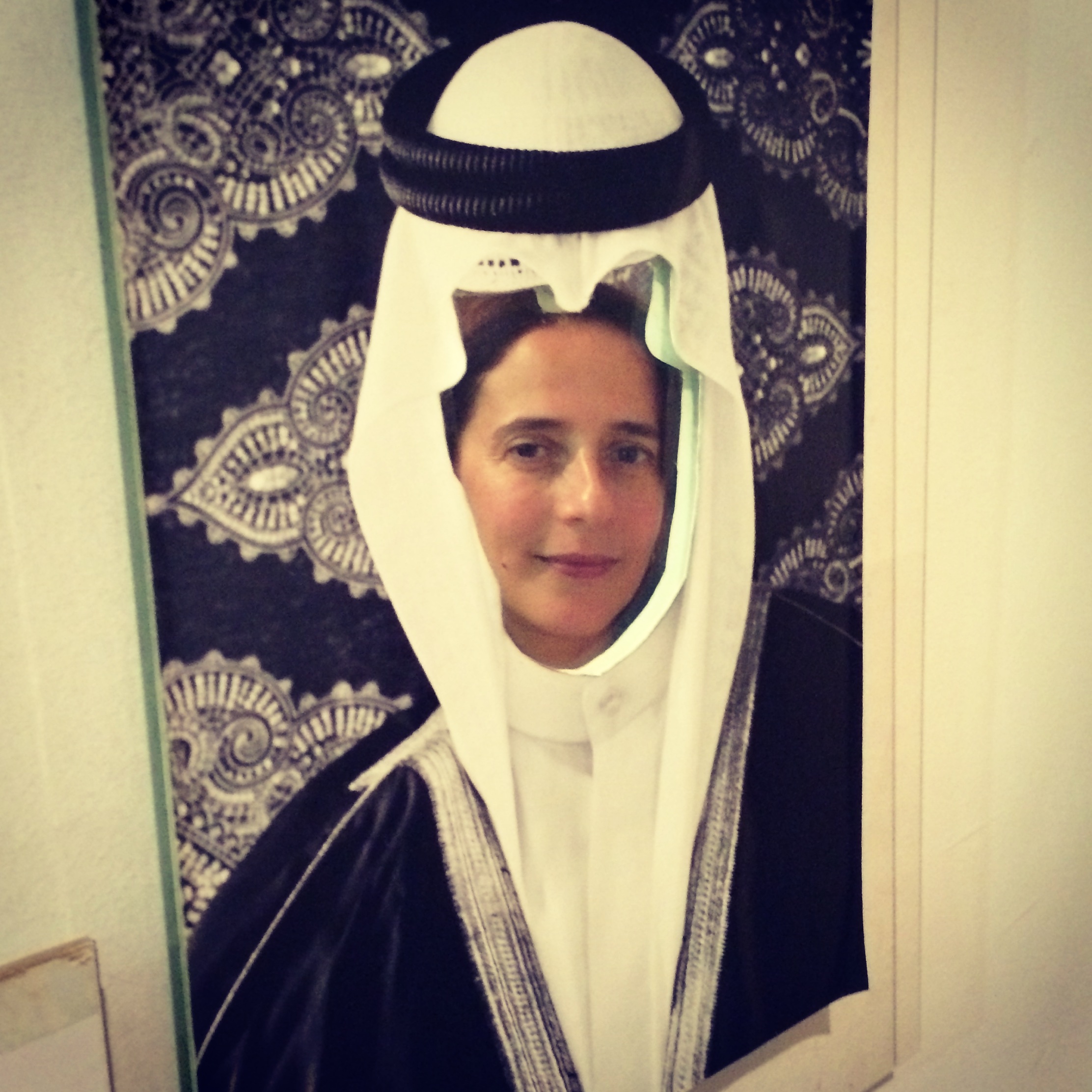 while waiting for the concert to begin, reem and i found these mirrored arab head dress templates hanging in the breezeway, so naturally we decided to do some instagramming. this one is mine: reem as a kuwaiti groom