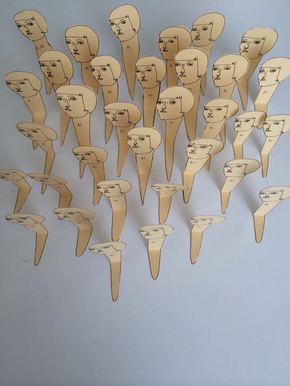 I was sitting around last night enjoying my son K and his friend’s endless laughter at some low-tech video game, while my son Y entertained two of his friends. Z was in her room and me, I was sitting around enjoying life. And then I decided to create these pinheads. I honestly can’t remember what I was thinking or how this idea formed in my mind. It started with one head/neck combo shaped like a golf tee and sort of went from there.