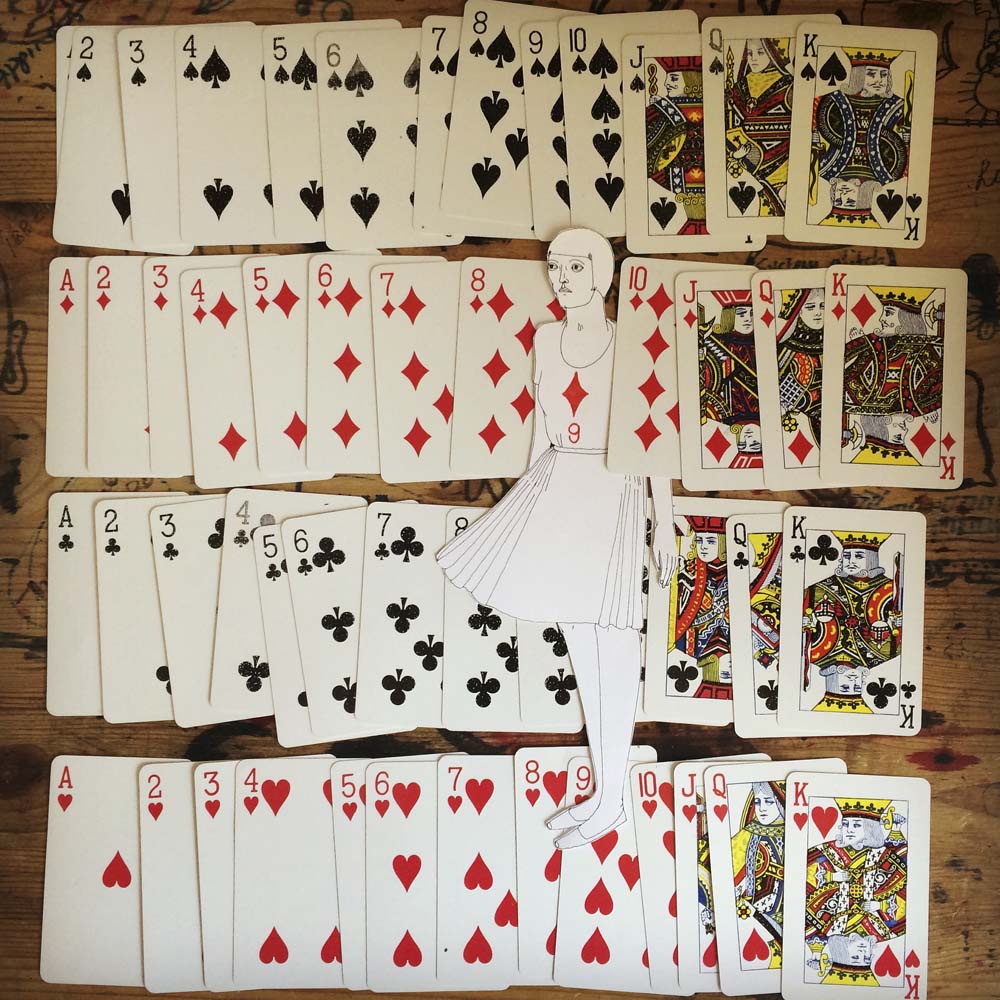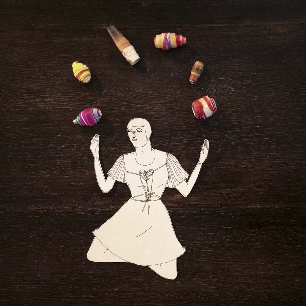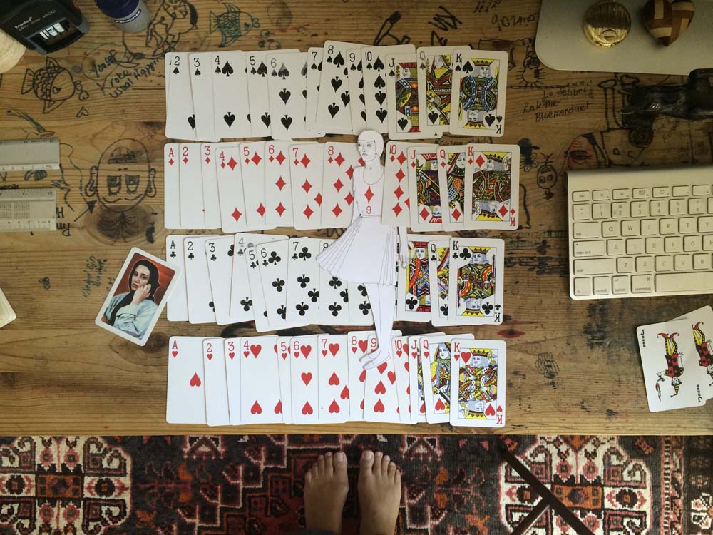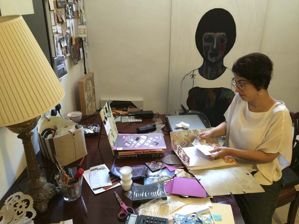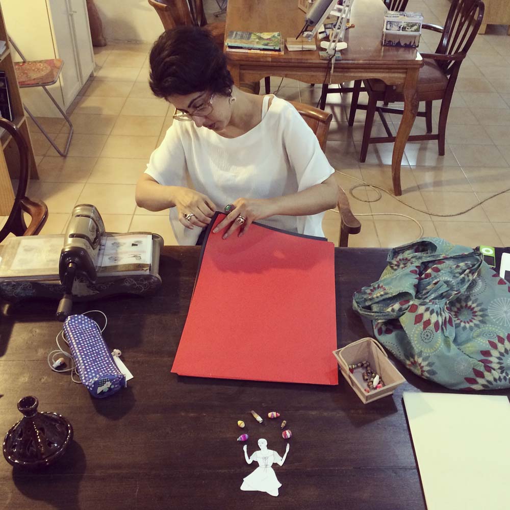 lubna sorts through multi-colored clairefontaine paper while eve plays