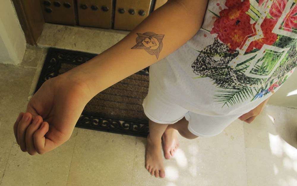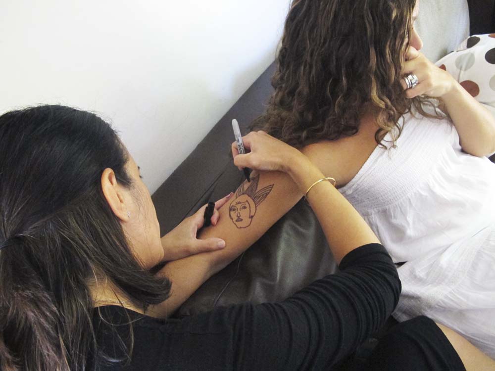 skin is the second most satisfying thing to draw on after banana peel. here hala being a great sport. nothing like a post-brunch body doodle session