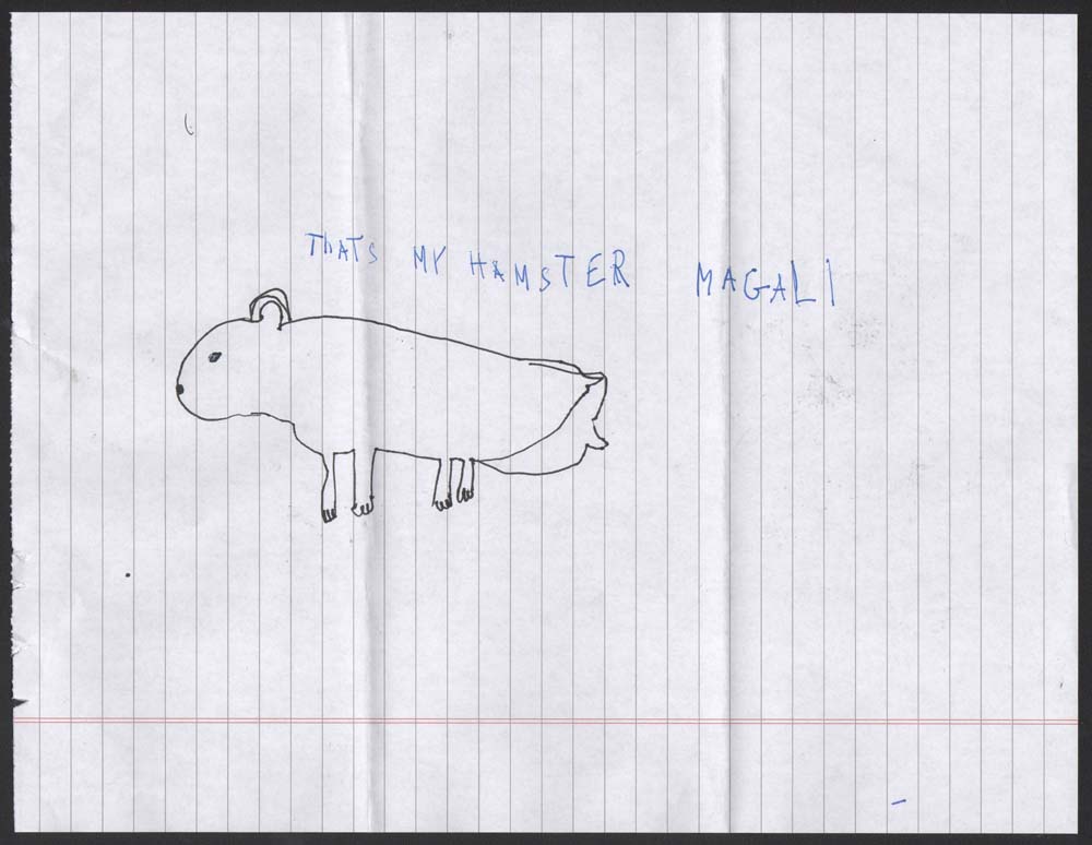 Secretary #10: Camilla. Ms. Camilla drew her pet hamster Magali. She folded her letter into three equal segments. She ignored the lines completely.
