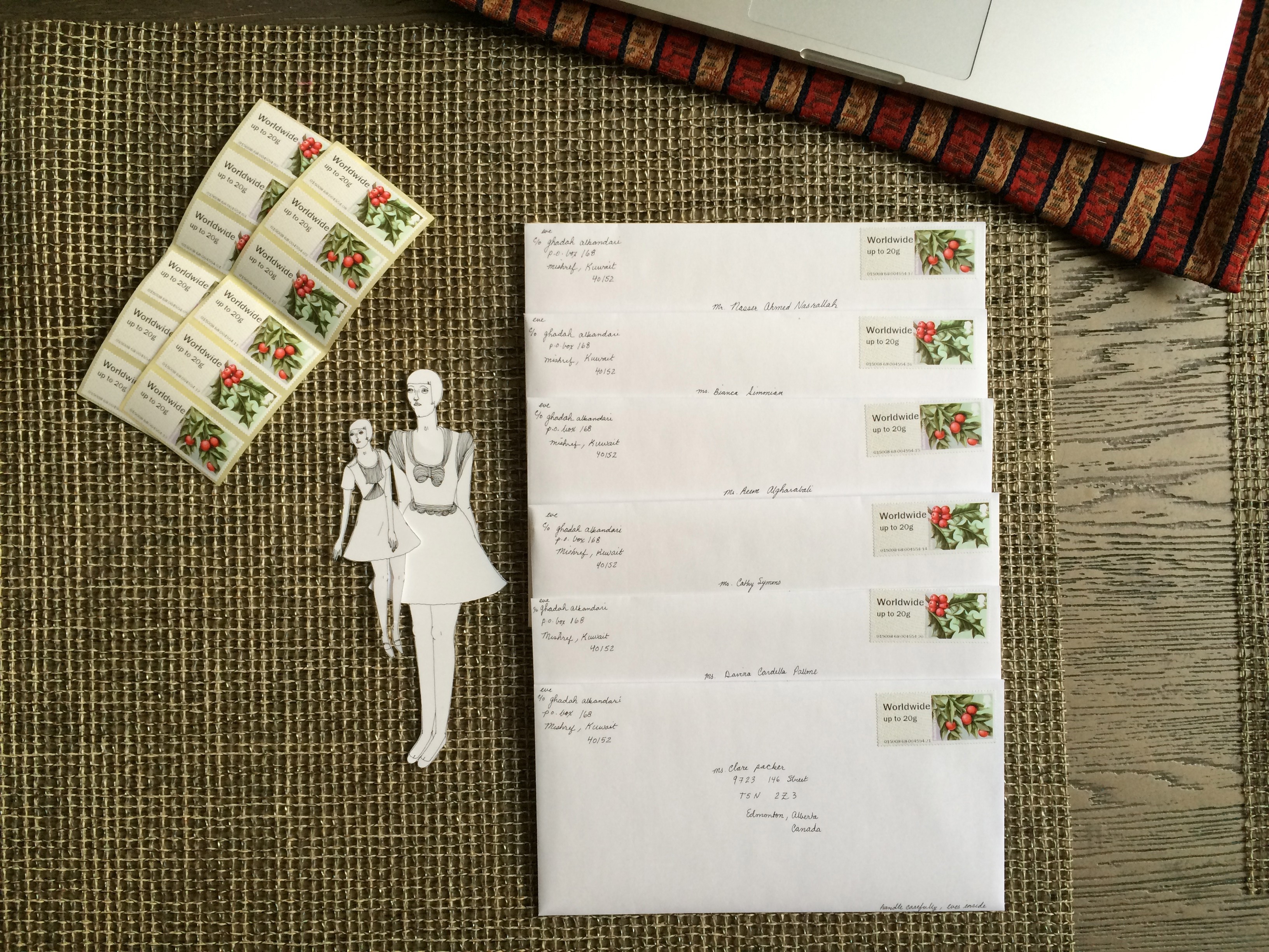 a bit of afternoon shopping resulted in me buying coasters for my sister and some lovely knit wrist-warmers for me. sarah bought a snood and a pair of wrist-warmers too. here piyush suri carefully wraps the coasters