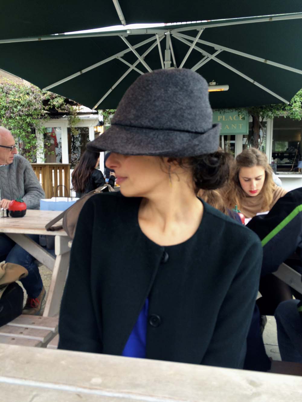 sarah in her new hat photographed by elizabeth renton’s ceramic display. it was the pomegranates that attracted our attention to this thoughtfully put-together booth