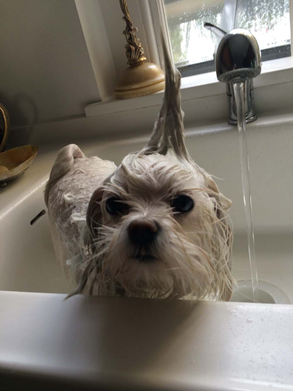 after it's a bath for roxy. she doesn't need a leg-up, she already has one