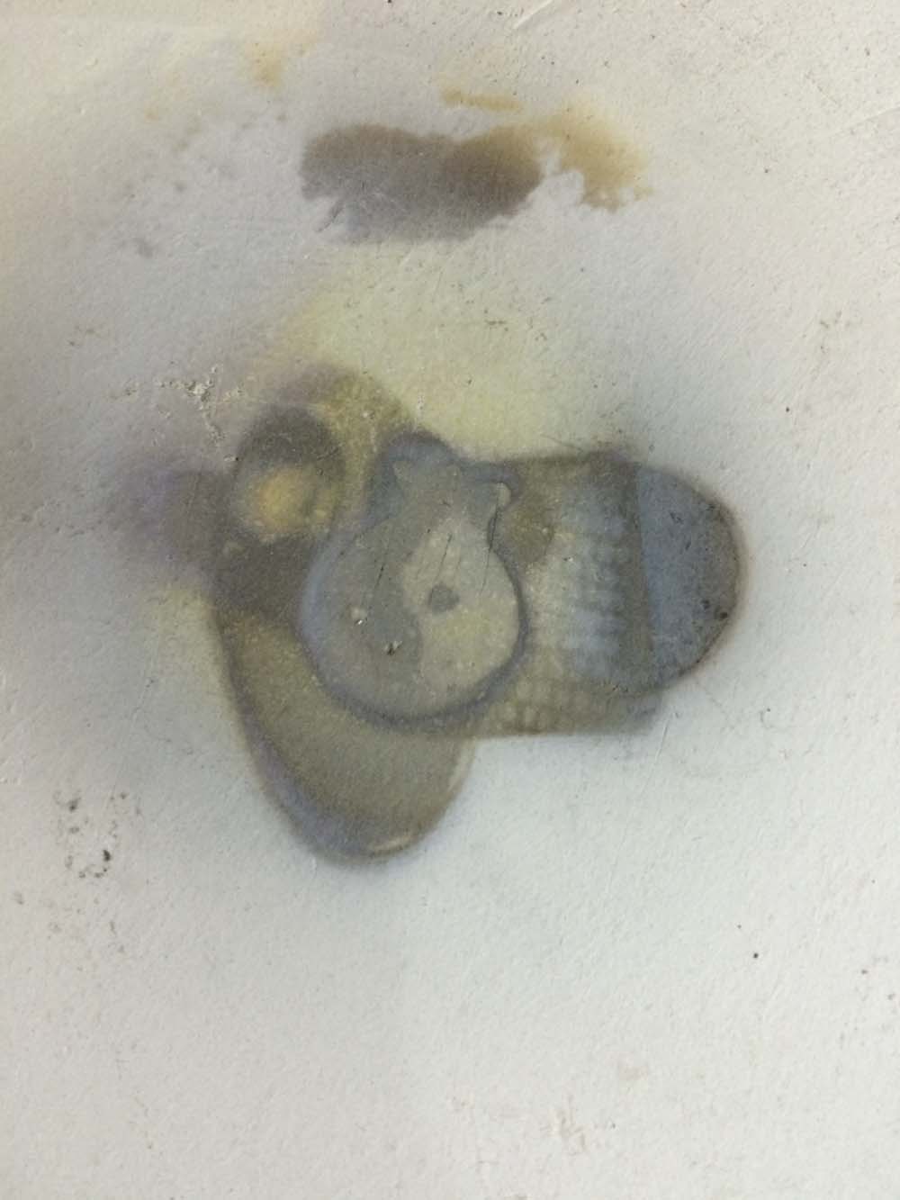 i love the burning marks left on the slab after each heating process. here, lina's pomegranate piece has left behind a yin and yang