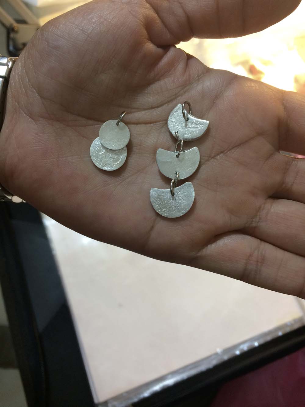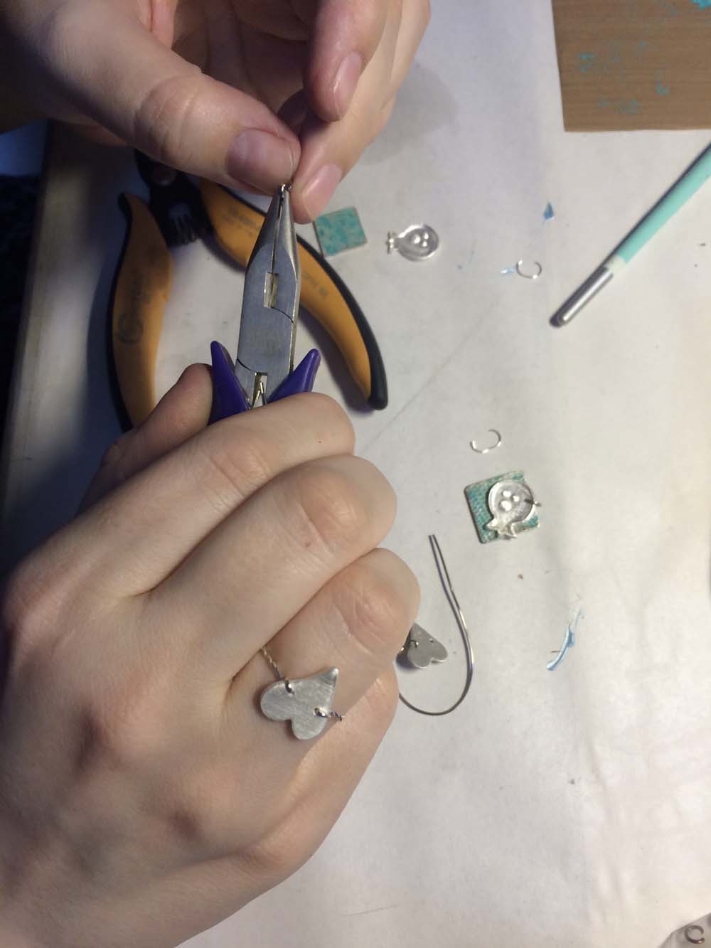 i created the components but lubna generously assembled the earrings. because i made the holes in my pieces so tiny, it was a challenge finding a wire thin enough for the jump rings, so here lubna is creating custom ones for me. this is what i call love and passion for one’s vocation