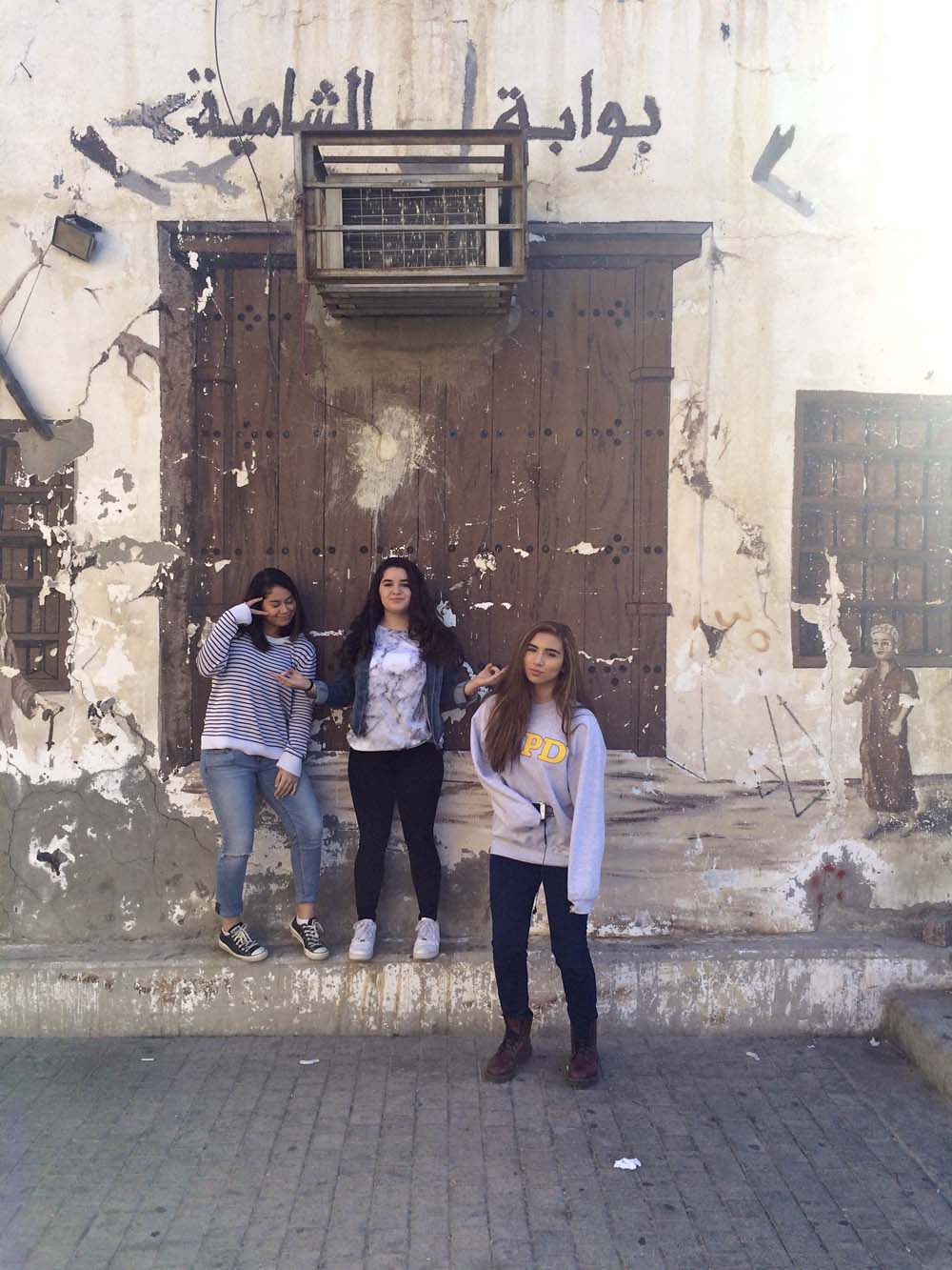 deema (left) explains her 'madeenah' city walks to an attentive huda, laila and farah at zeri crafts