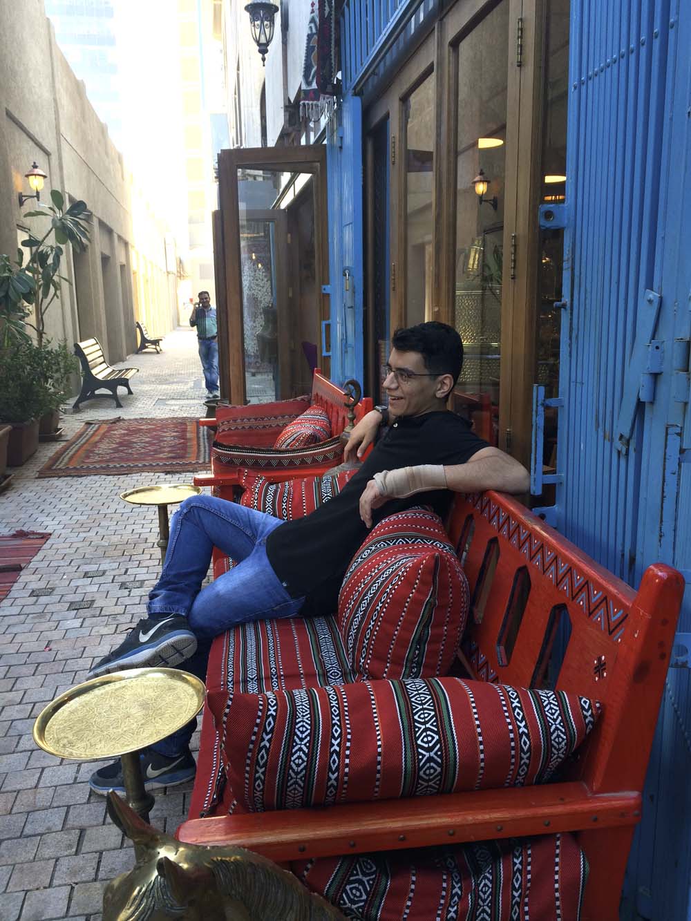 and back to the riff raff. omar, khaled and yousef chat among a dhow, chest and some ersatz swords