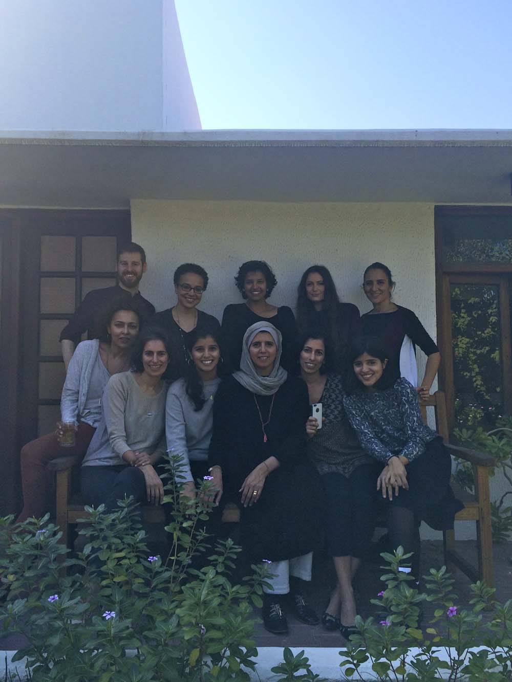 in the zeri crafts front garden. sitting left to right: rabaa, sarah, shoag, huda, laila, farah. standing left to right: matt, farah, deema, georgia and me