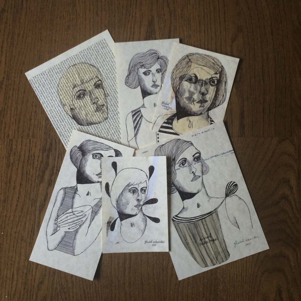 I found these four drawings today. I had forgotten all about them, so you can understand my delightful surprise at finding them rather unceremoniously tucked under a pile of notebooks and scrap paper. Poor things.