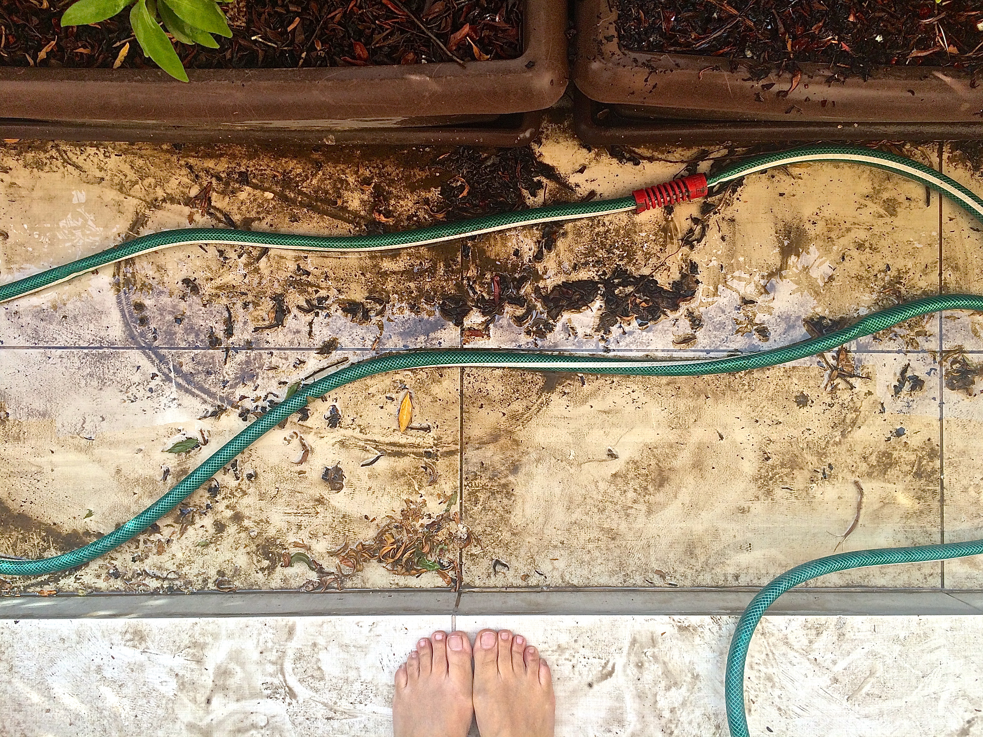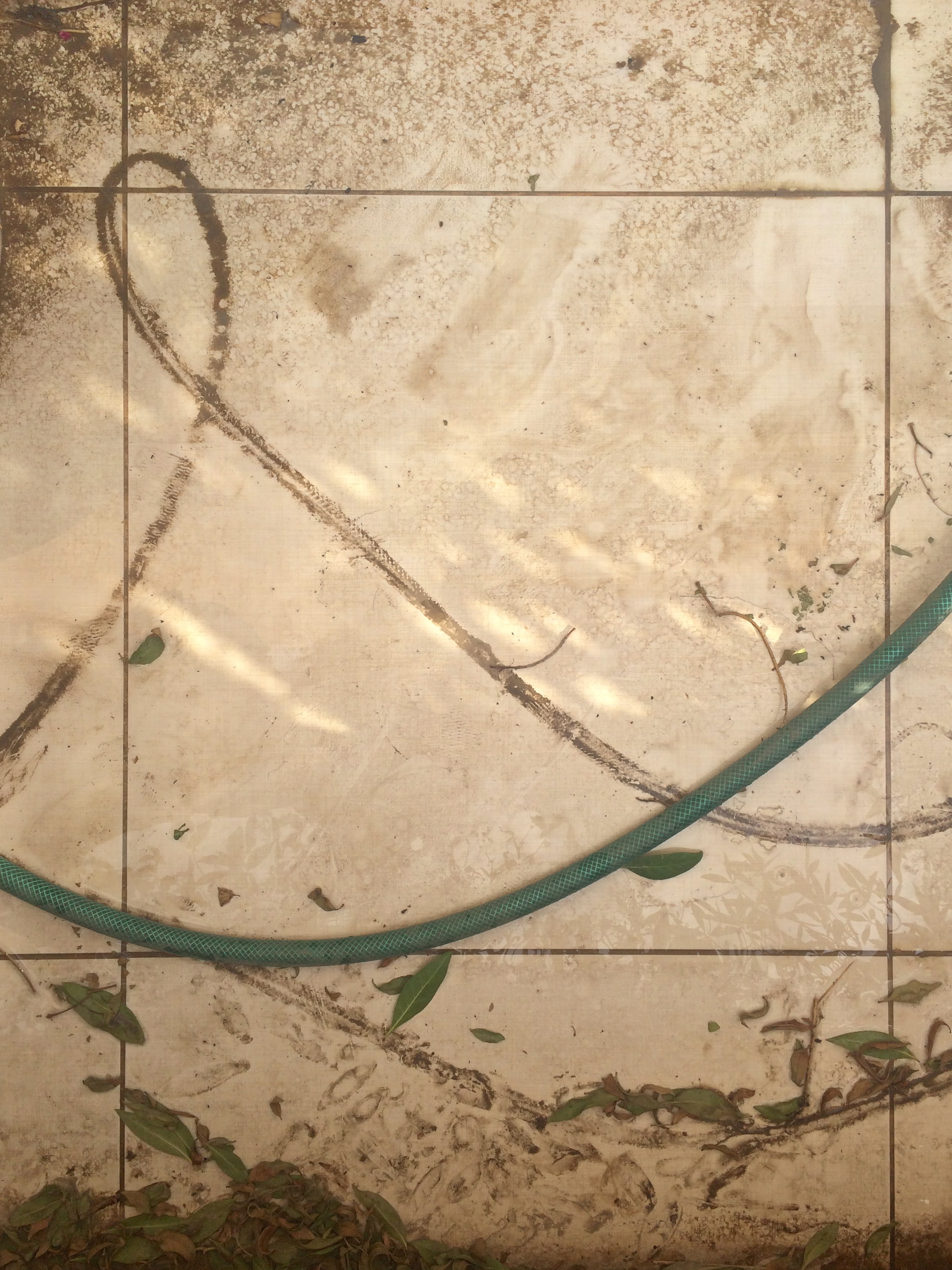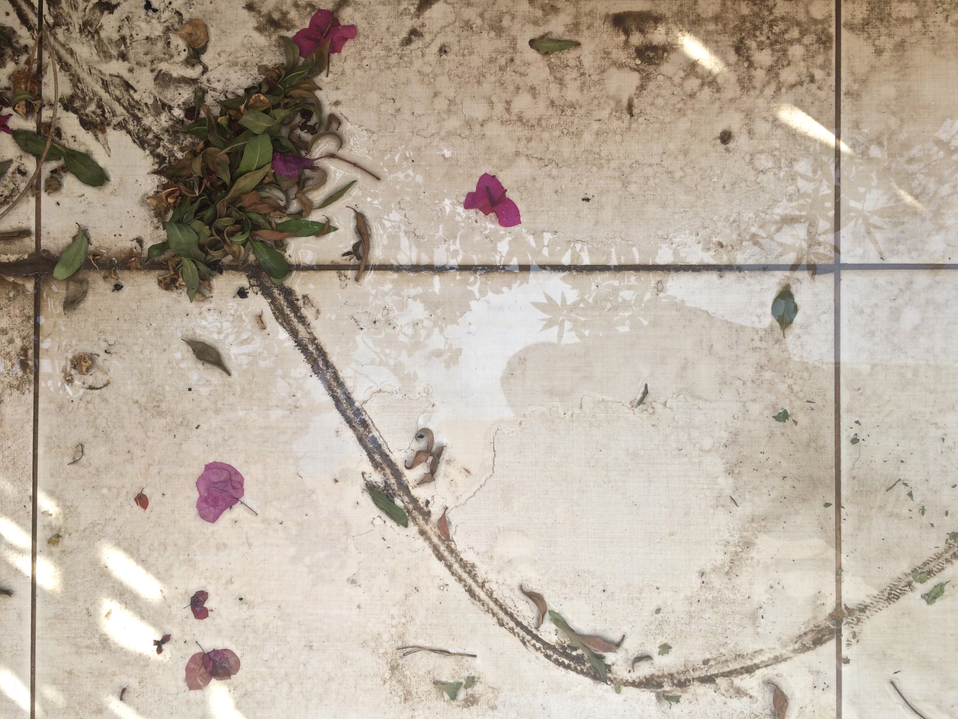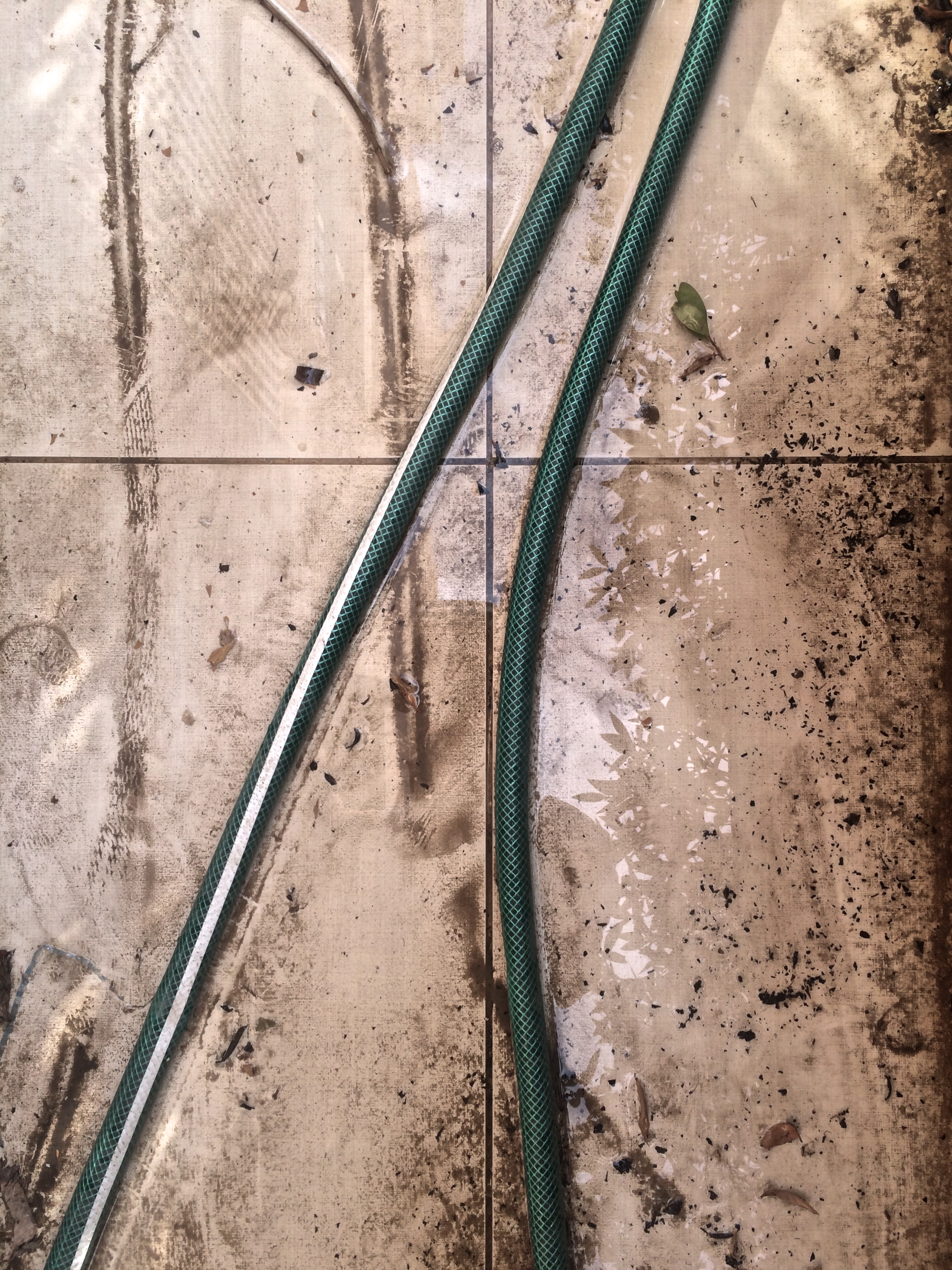 Ok, before you go all ‘that’s what she said’ on me, hear me out. A year ago I bought this shitty hose from Ace Hardware. I swear, it came with built-in kinks. The thing won’t recoil, hardens in the sun and takes forever to spray. And as you can see, my terrace is in shambles. We’ve had some pretty strong winds and a thunderstorm, and I just haven’t had the time to clean outside. Plus I hate my hose. And the cats don’t help. BUT. All these factors have converged to create artistic nature pieces in my terrace. So I thought I’d share some of these works with you.