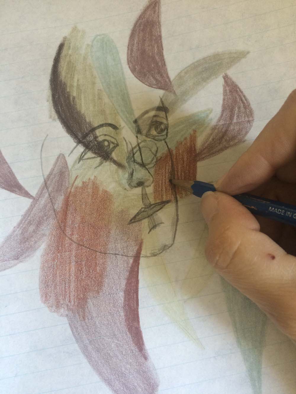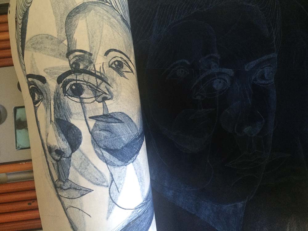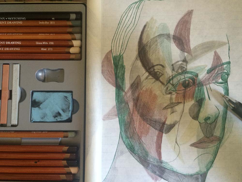 Category: In Triplicate } The Creation of Unoriginal Artwork Tags: art, color, copy, drawing, duplicate, face, ink, Kuwait, pen, pencil, sketch, stationary, triplicate, woman