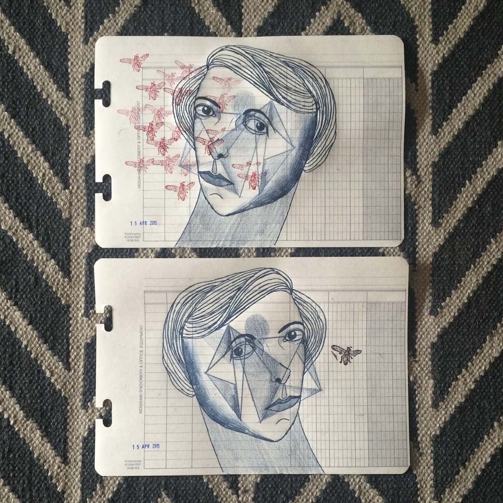 Category: Kalamazoo, Kalamazoo Stacks Tags: art, ballpoint pen, carbon, color, drawing, Kuwait, paper, portrait, sketch, stamp, stationary, symmetry, transfer, woman