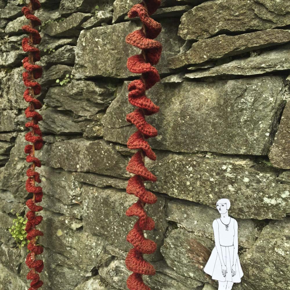 she finds hanging knit sculptures by dianne standen. she wishes she could knit, and decorate nature with her creations