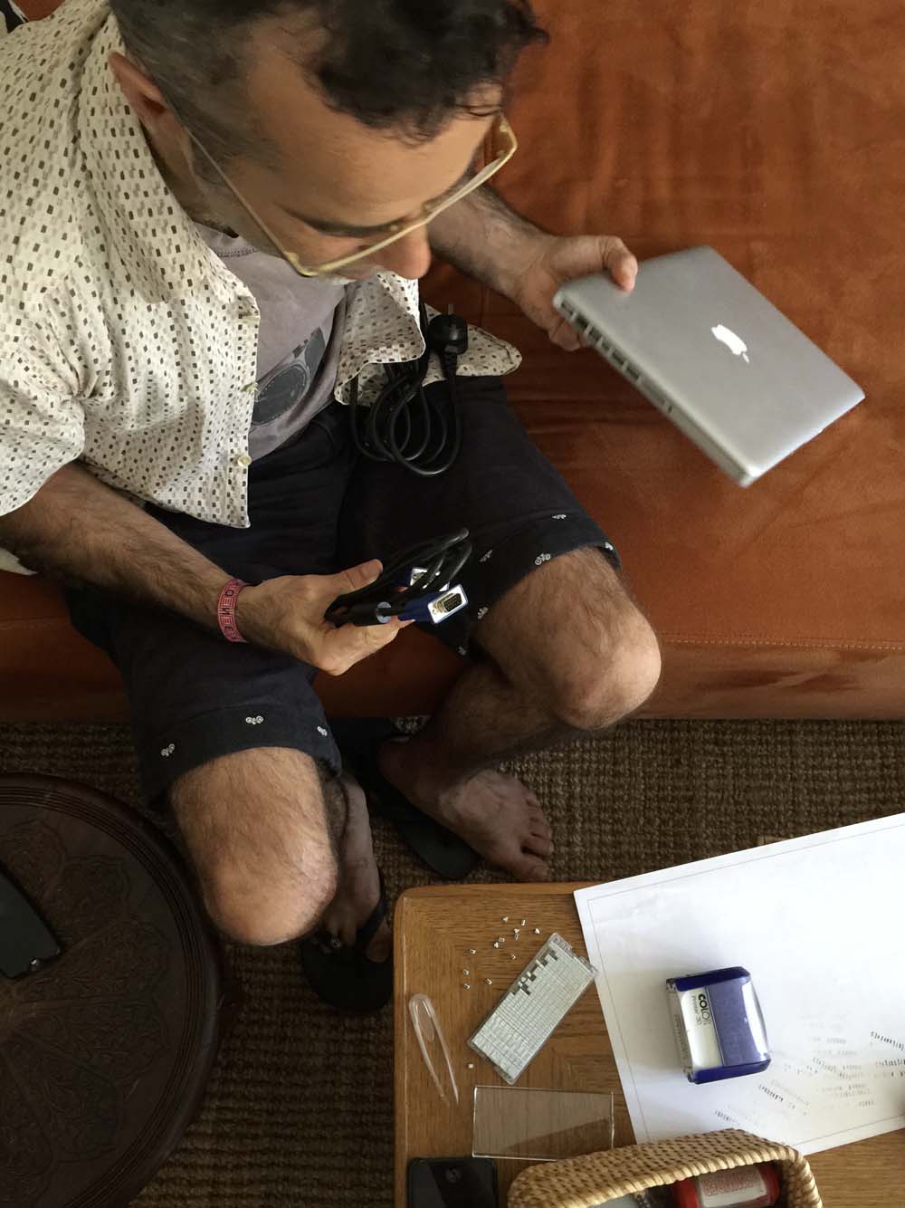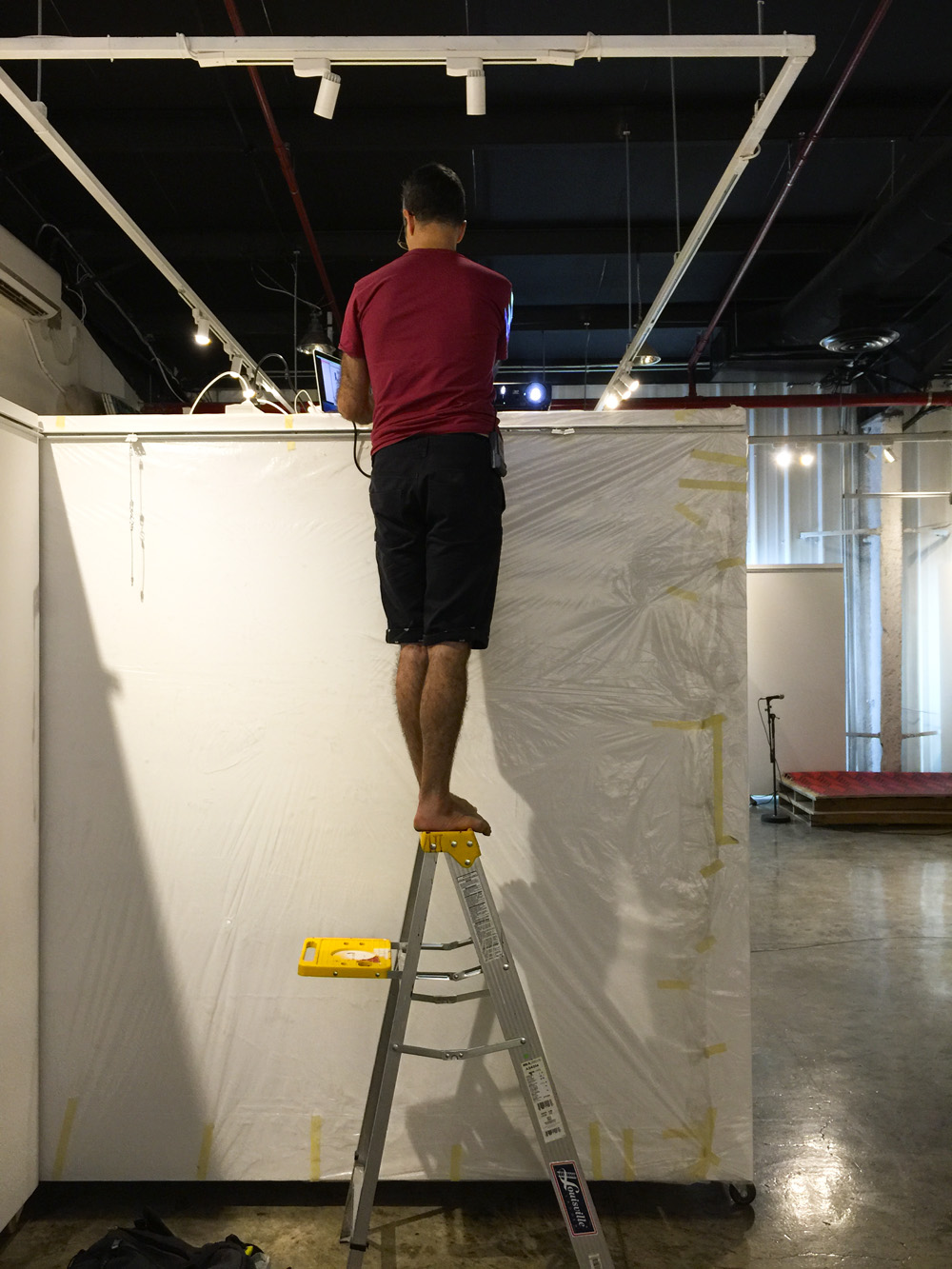 - physical preparations began at 2 pm. here, chris gets the projection going