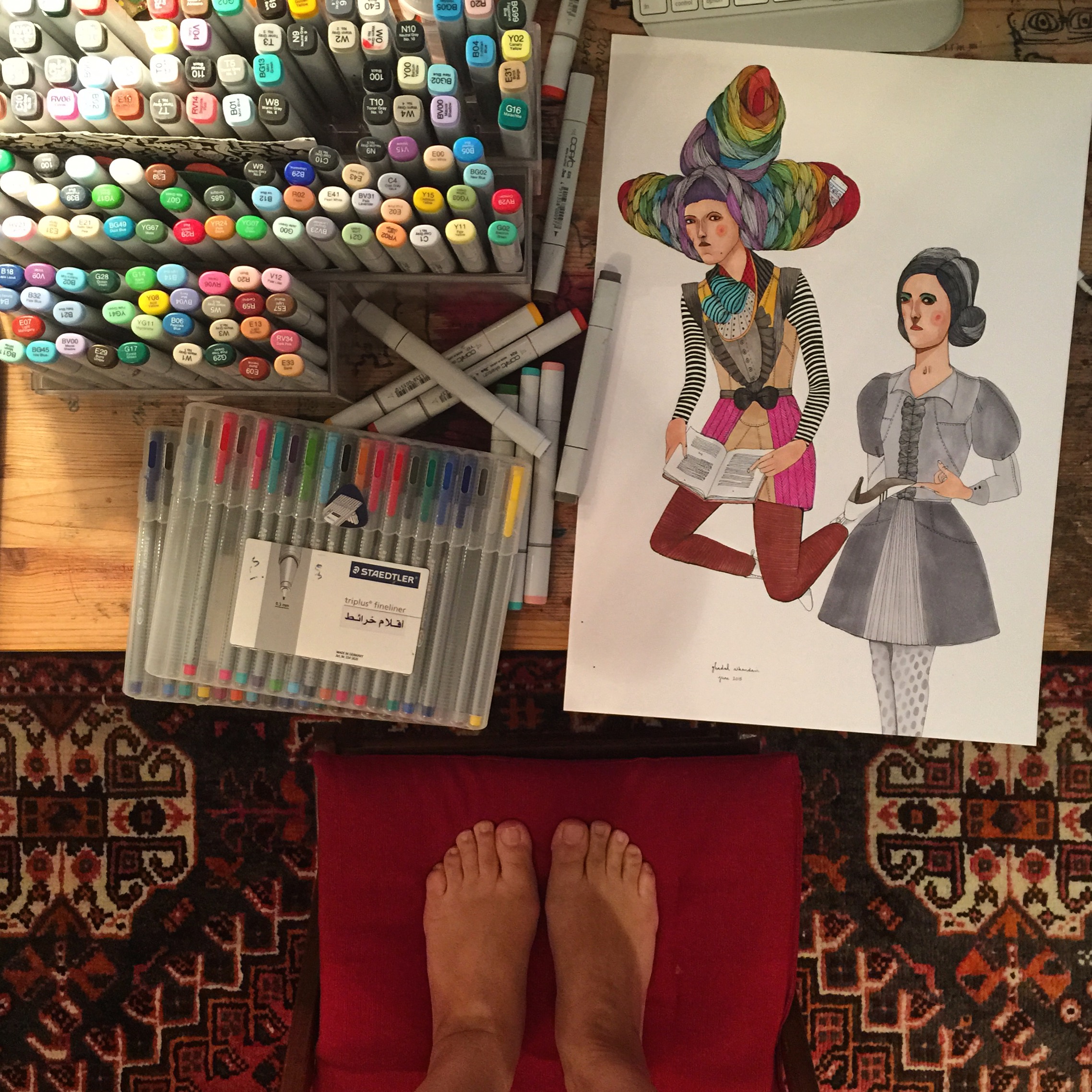 Category: Fashionistas, slideshows, Storybook Drawings, Video Tags: art, book, color, copic markers, drawing, fashion, Kuwait, librarian, Sketchbook, slideshow, video, women