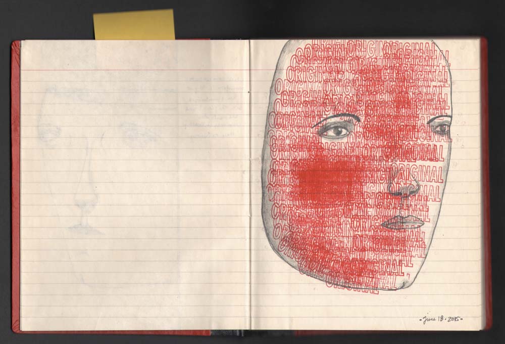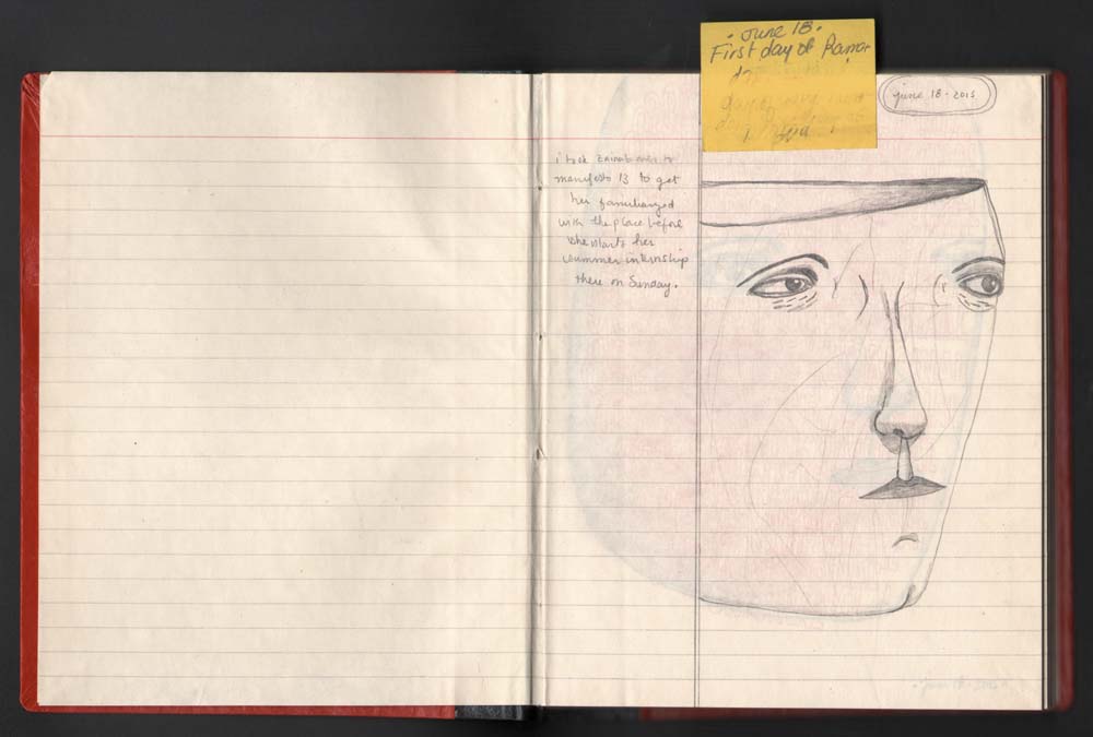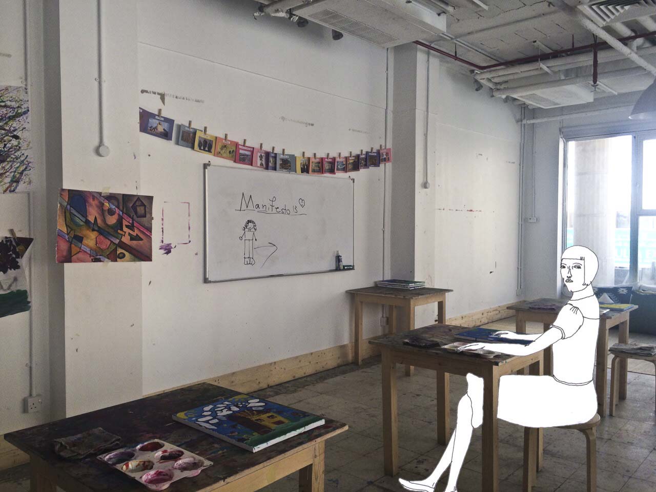 This post is not about Manifesto 13. It’s about this red and black schoolbook that Dalal Al-Nafisi (founder of Manifesto 13) gave me when I visited the art center with Zainab this morning. I do want to go back and do some proper snooping around (unfortunately I’d forgotten my phone this morning. I couldn’t take photos so borrowed Z’s). Hopefully soon I’ll have a proper M13 post.