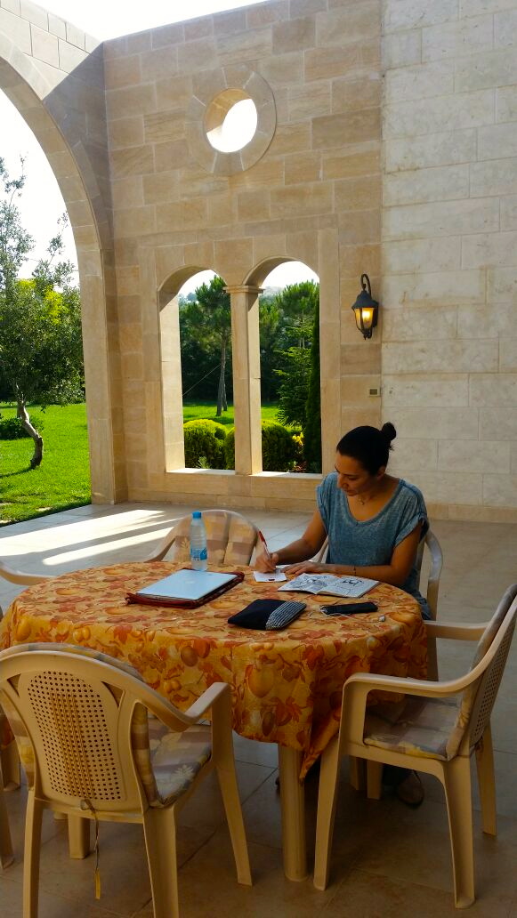 eve enjoys the lebanese treetops. it’s midday now. we’ll probably go out soon. i’m ready for the city, so hope to go back down to beirut tomorrow