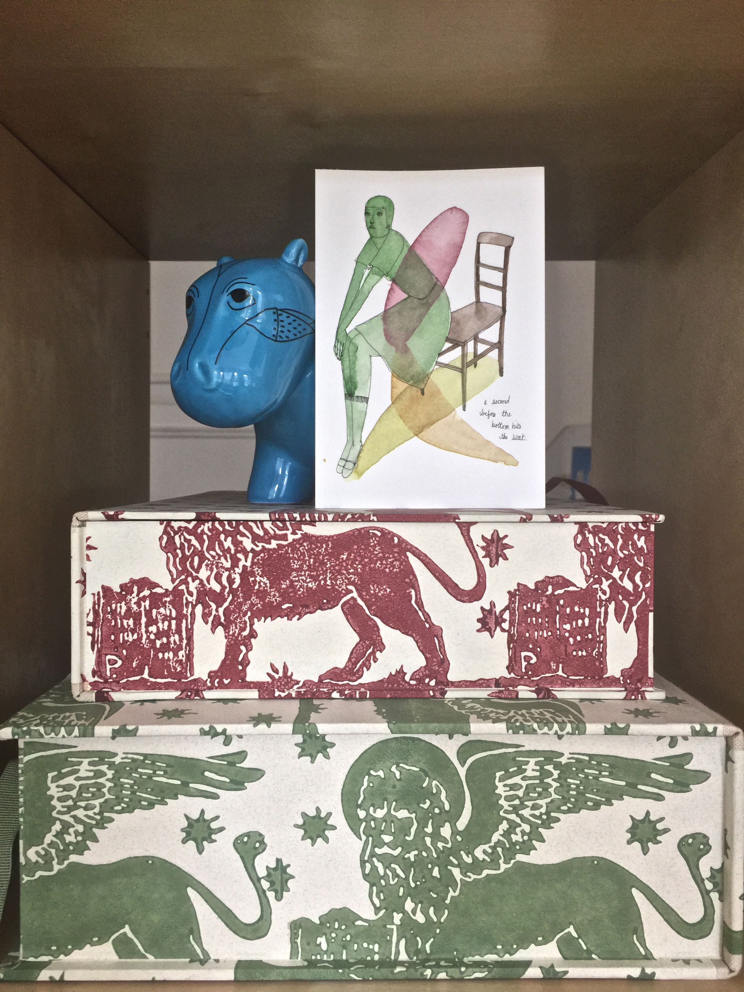 september 11 } eve got up to her shenanigans on anna’s windowsill, inspired by linda fennigbauer’s charming postcard
