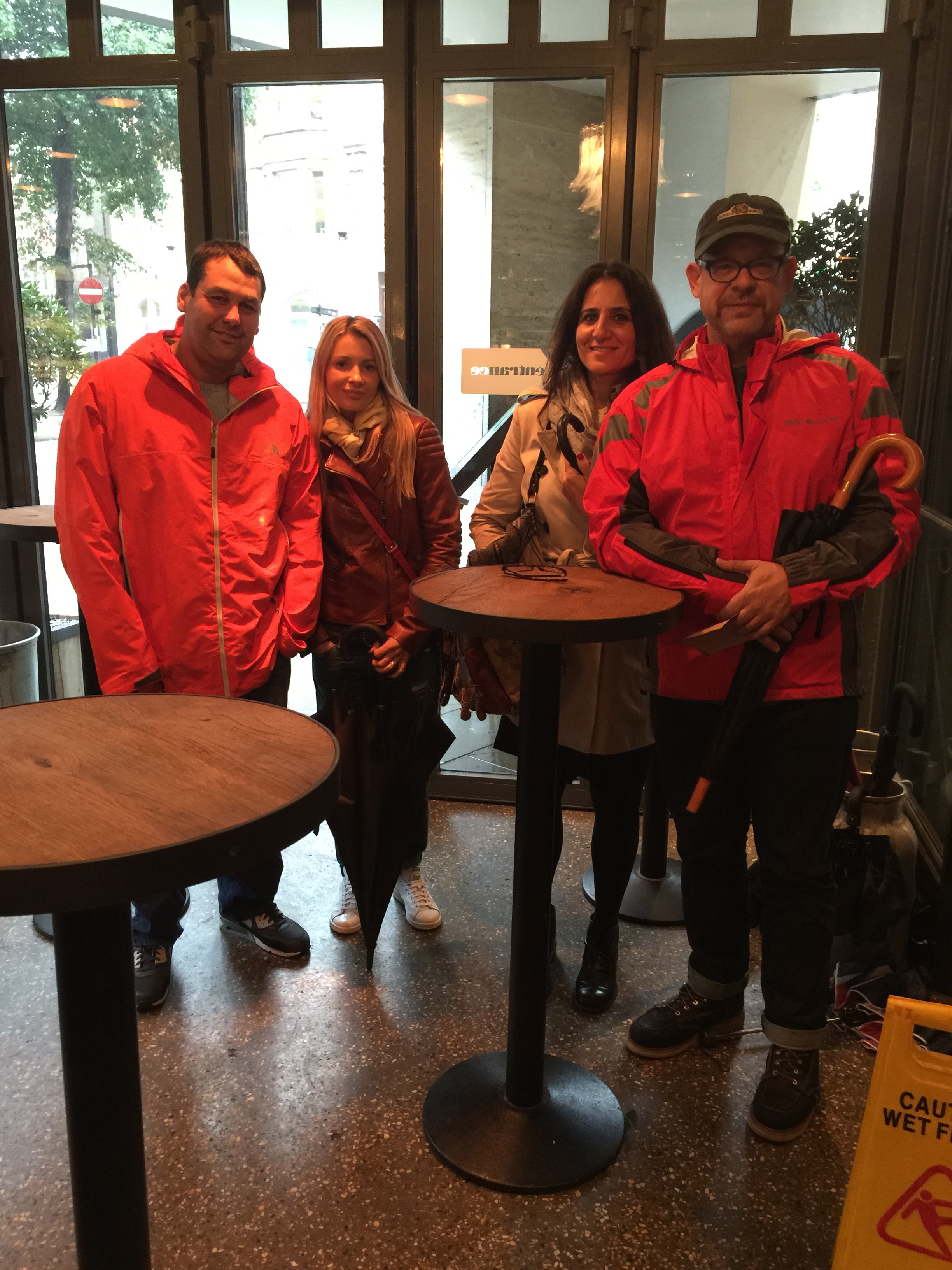 yasmine, victoria, helmy, an excited umbrella, me and david in the pouring rain. yasmine and i are so pooped after this. we go home, order a netflix movie and munch on a week’s worth of pret sandwiches and salads