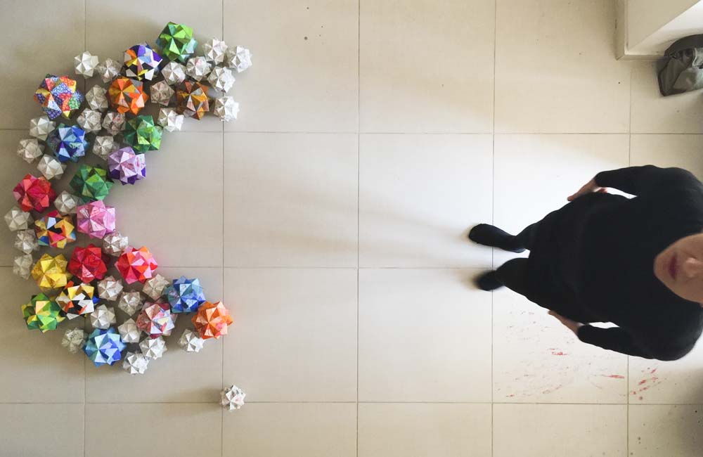 My obsession with origami polyhedra began a few months ago. Now I have fifty-two of these structures lying on my floor and I won’t stop making them until I find love.